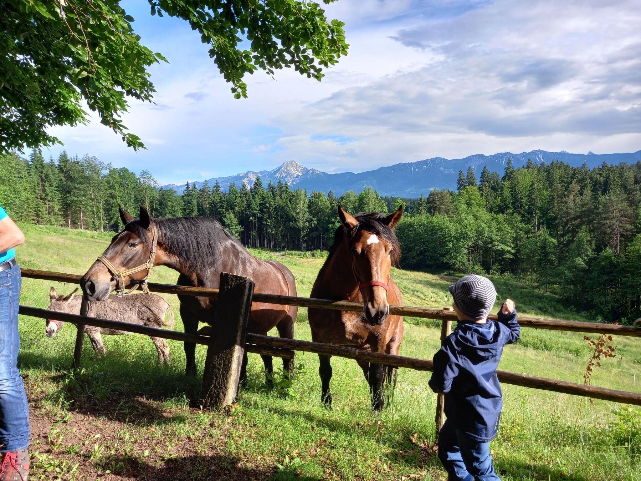 I-aa! Levina mag Streicheleinheiten und Karotten. Darauf freuen sich auch unsere Pferde, die ihren Sommer in unser Bergwiese verbringen. Inklusive Kärnten Card und Erlebnis Card Villach - nur 2 km zum Ossiacher See und zur Gerlitzen Kanzelbahn.