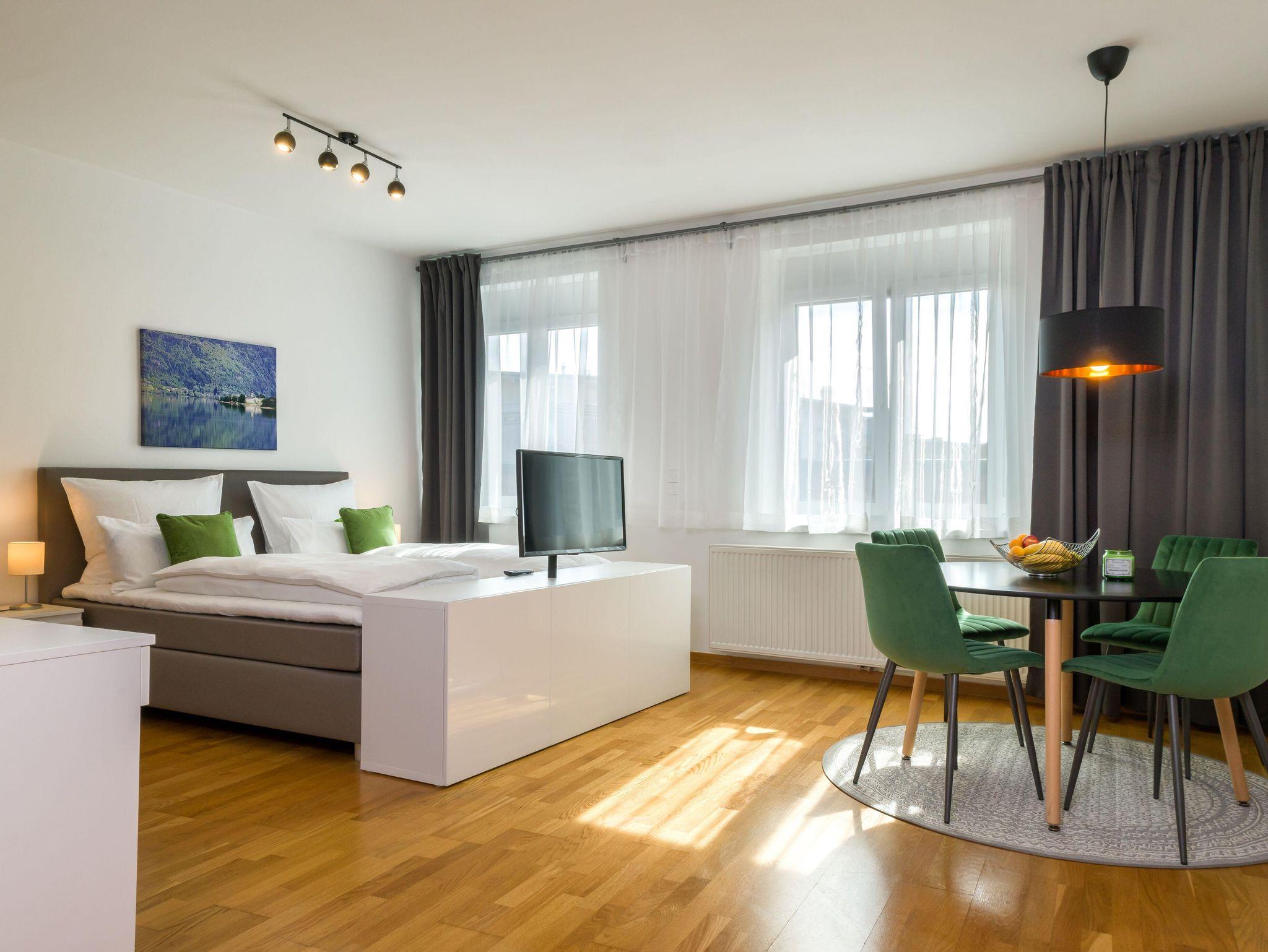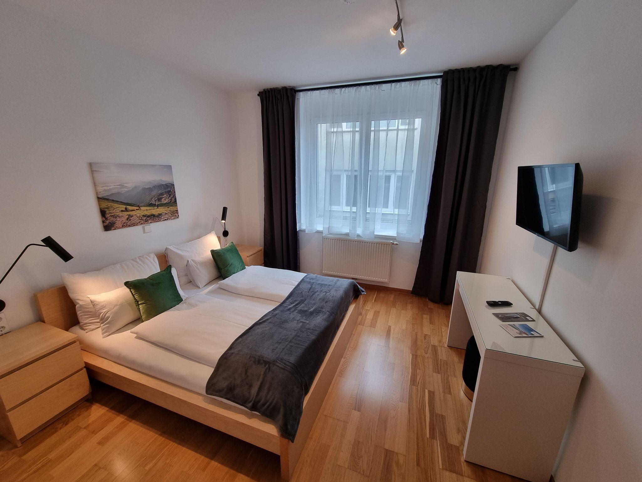 City Appartements Villach, Doppelzimmer, Bad, WC, straßenseitig