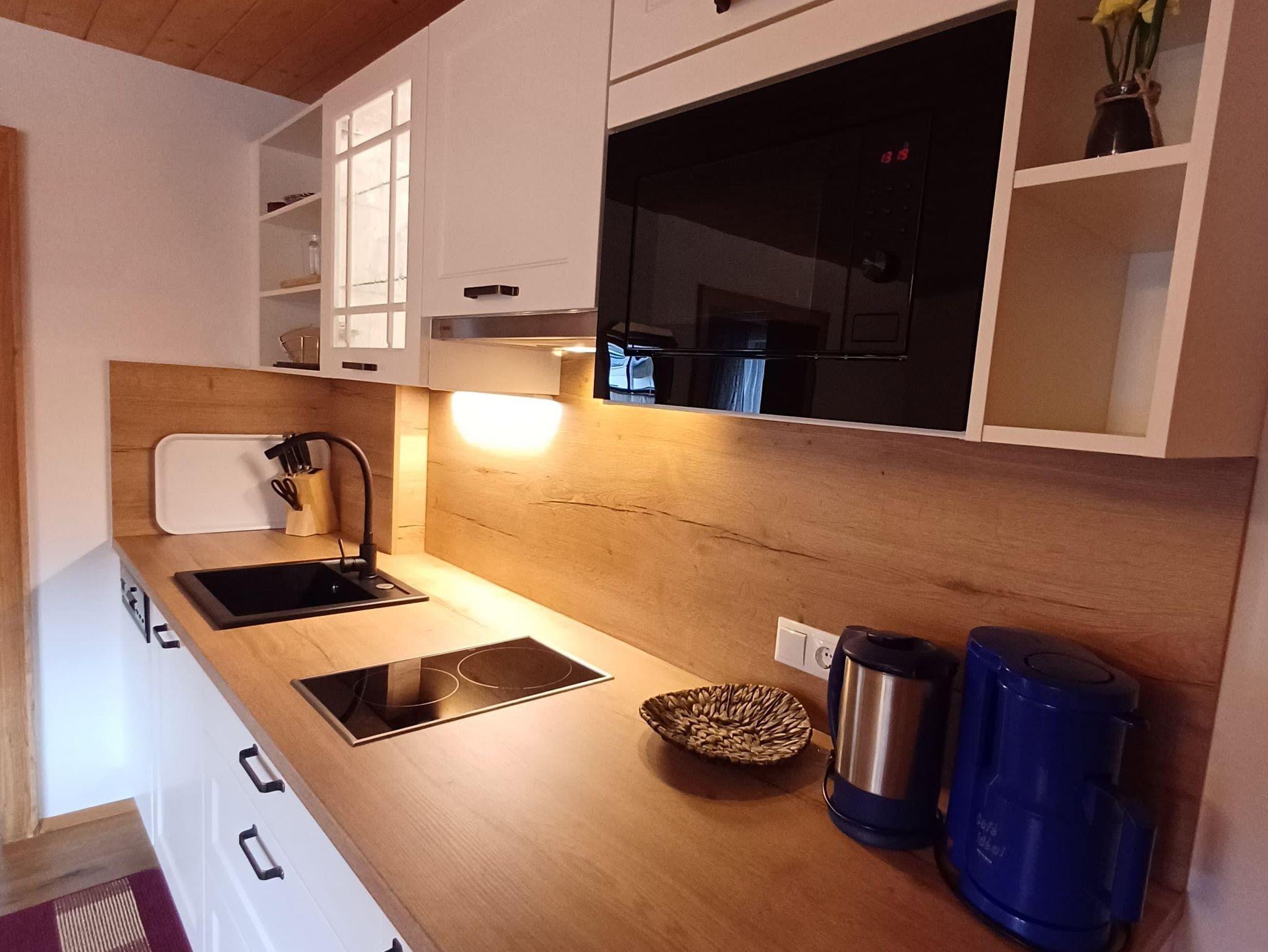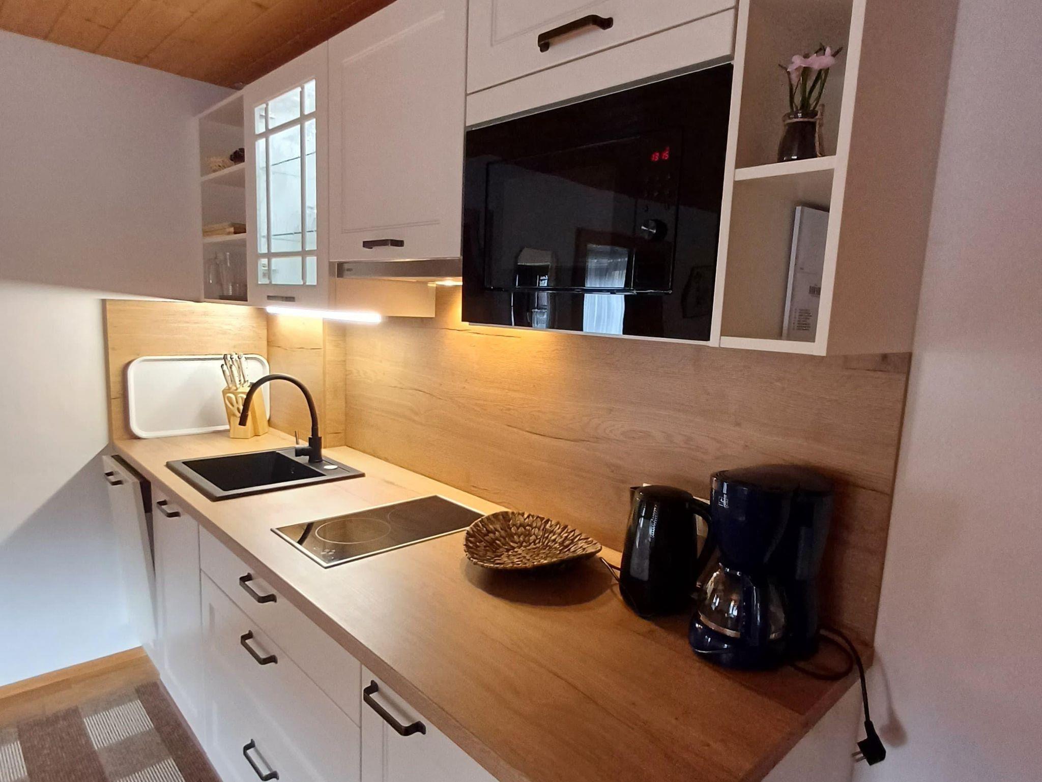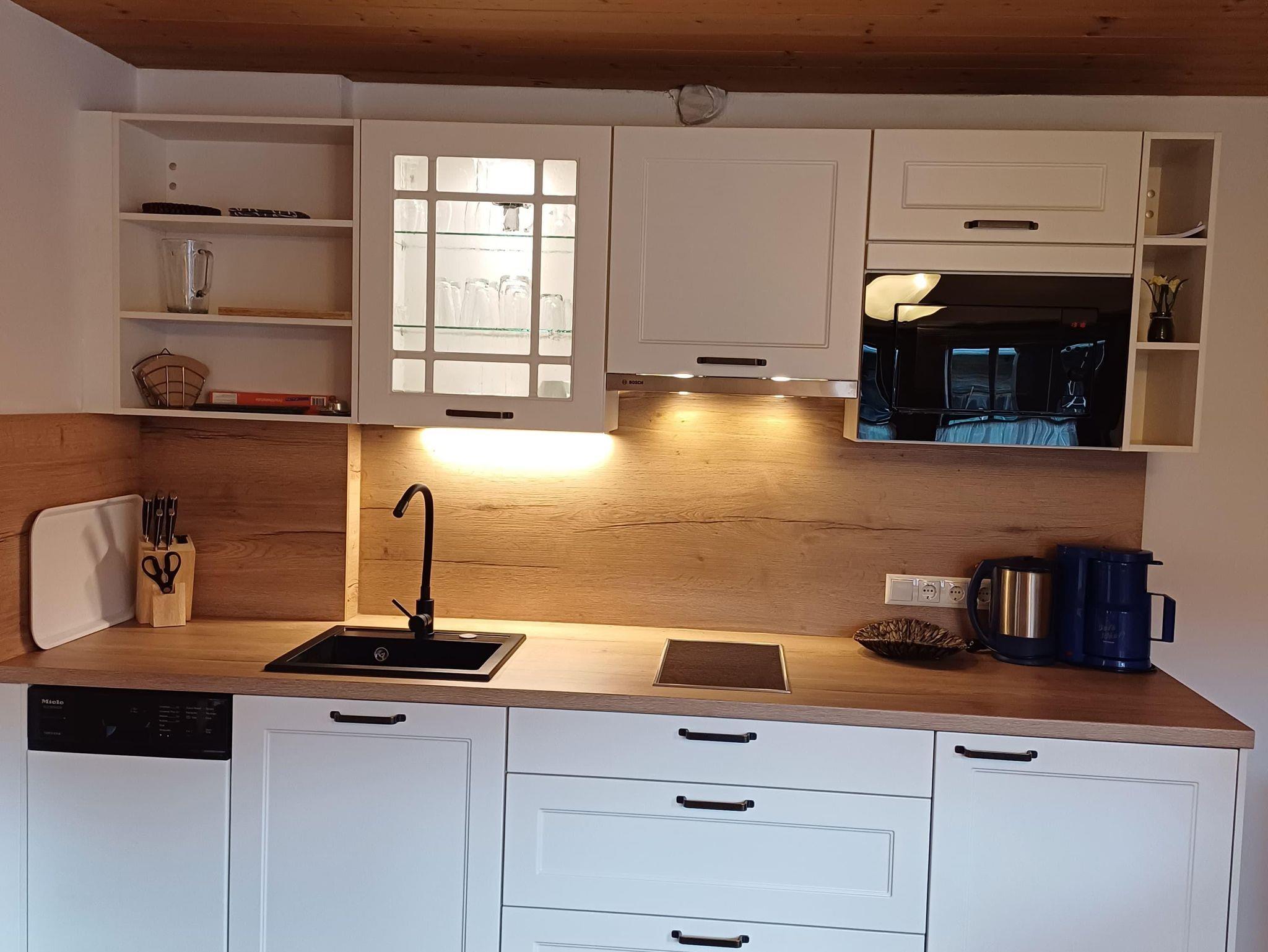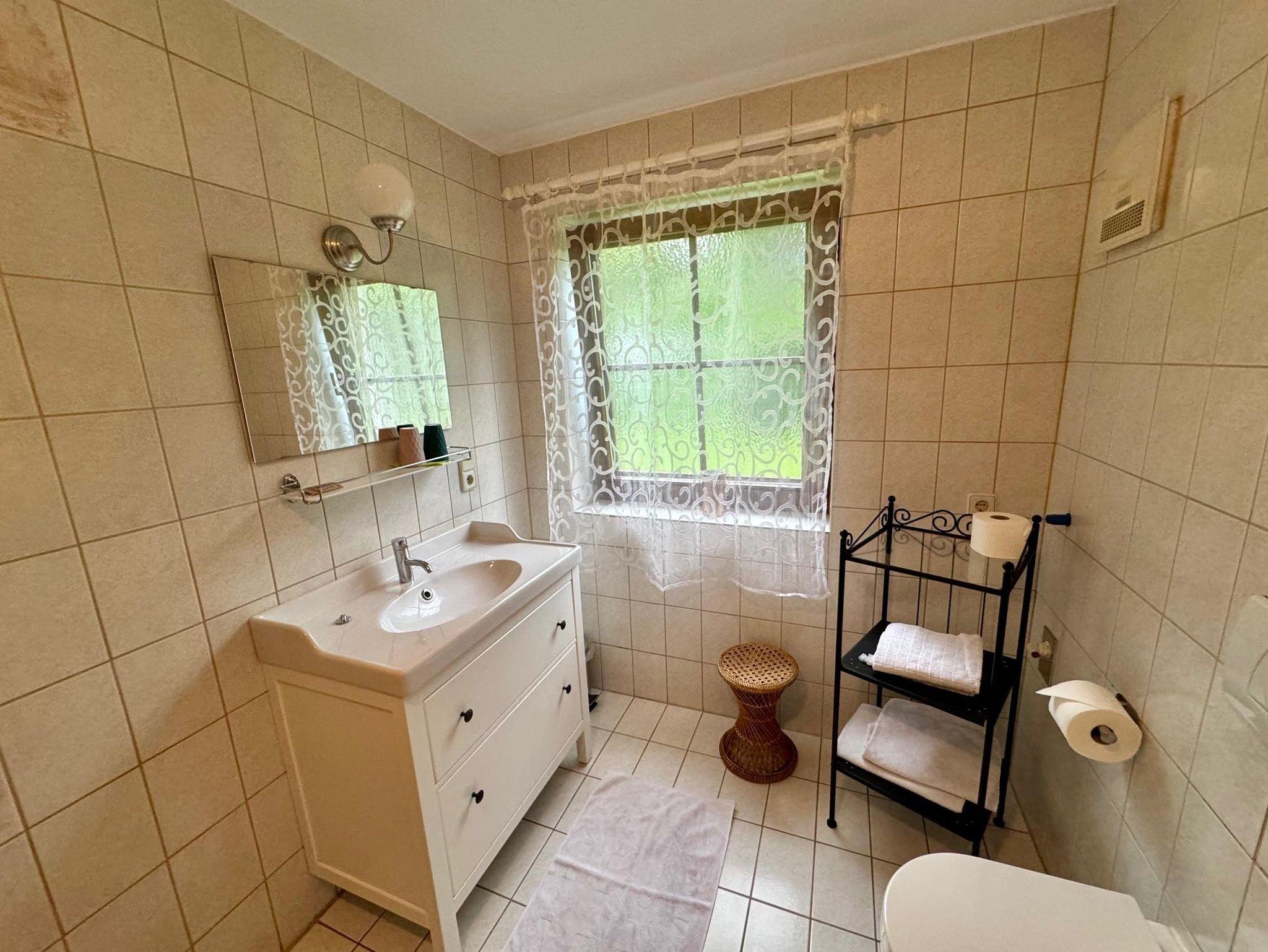 36 m² Appartement mit 1 Schlafzimmer mit Doppelbett, Wohnküche - komplett ausgestattet, Geschirrspüler, Bad mit Badewanne / WC, SAT-TV, Balkon, Zugang zur Terrasse u. Garten, NEU! Gratis Glasfaser Fiber Speed 750/100 Mbit/s.