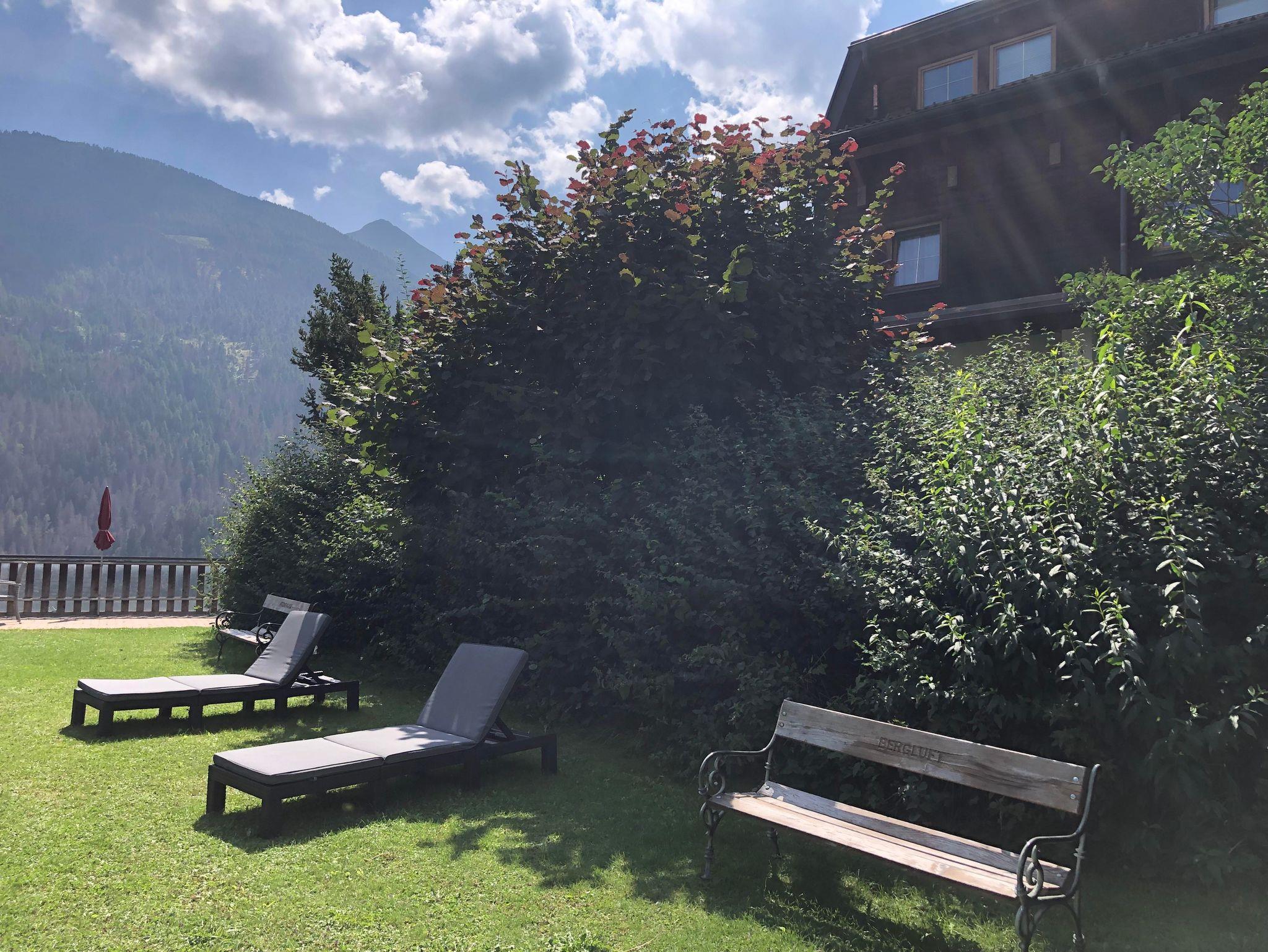 Entspannen Sie im großen Garten und auf unserer 60-m-langen Sonnenterrasse auf gemütlichen Loungemöbel den Panoramablick über Virgen genießend.