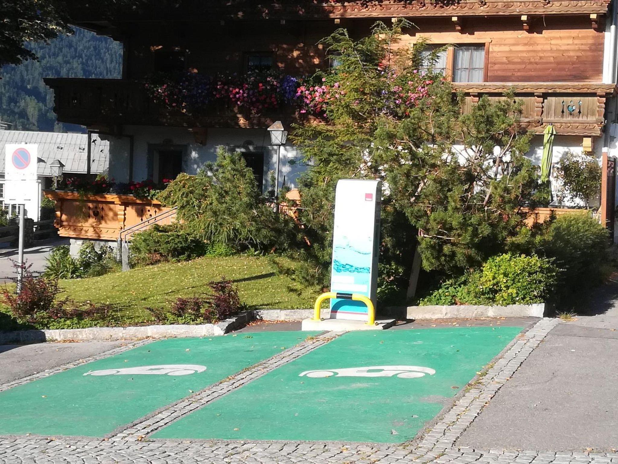 Gratis-Skibus- und Bushaltestelle, Geschäfte, Bäckerei, Cafe´s, Gasthäuser usw. sind wenige Gehminuten entfernt. Eine öffentliche Elektro-Tankstelle für E-Autos ist direkt vor unserem Haus.