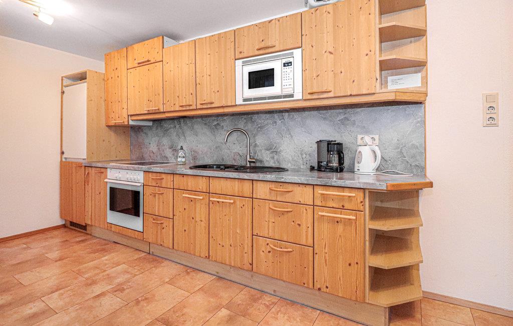Boligen er indrettet med træmøbler og udstråler hygge og varme. Her står der komfortable senge klar, som I kan lade jer synke ned i efter en lang dag på farten. I spisestuen kan I samles omkring spisebordet til dagens måltider eller brætspil.