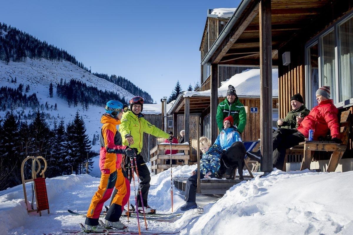 Hütte im Hüttendorf Präbichl – Gemütliche Almhütte mit Sauna direkt im Skigebiet