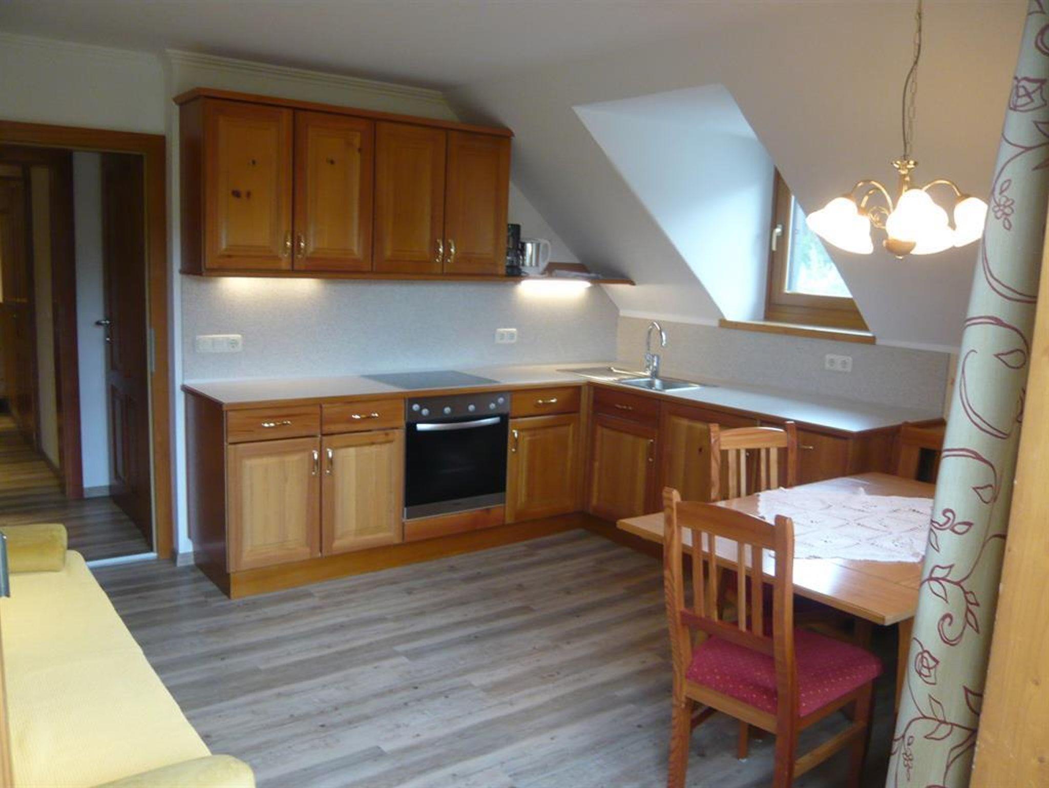 Genießen Sie die herrliche Aussicht in dieser hell eingerichteten Mansarden-Ferienwohnung im ländlichen Lärchenvollholz-Stil;