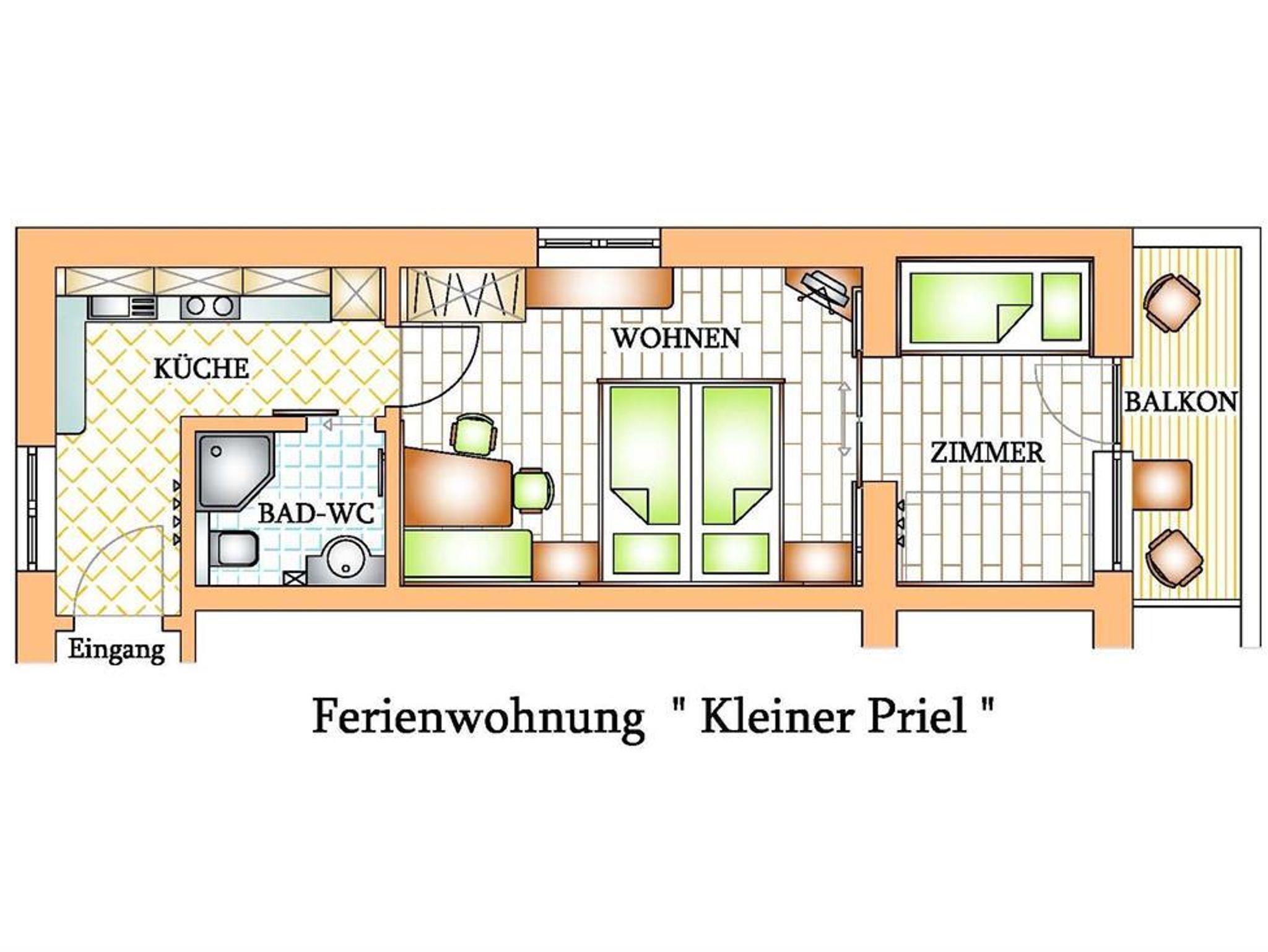 Ferienwohnung KLEINER PRIEL für 2-4 Personen im 1. Stock Genießen Sie die herrliche Aussicht in dieser hell eingerichteten Ferienwohnung im ländlichen Fichtenvollholz-Stil; Ein modernes Badezimmer mit Dusche/WC und das gemütliche Wohn-/Schlafzimmer mit Doppelbett, Sitzecke mit Sat-TV, Radio lassen keine Wünsche mehr offen. Es wird Ihnen leicht fallen, Ihre Familie zu bekochen in der vollausgestatteten Einbauküche mit Geschirrspüler, Kühlschrank, Ceran-Kochfeld, Micro - alles da, wie zu Hause! Schließen Sie die Schiebetüre zum Kinderzimmer mit ausziehbarem Kasten-Hochbett um ungestört schlafen zu können. Der geräumige Lärchenholz-Balkon ermöglicht einen wunderbaren Bergpanoramablick.