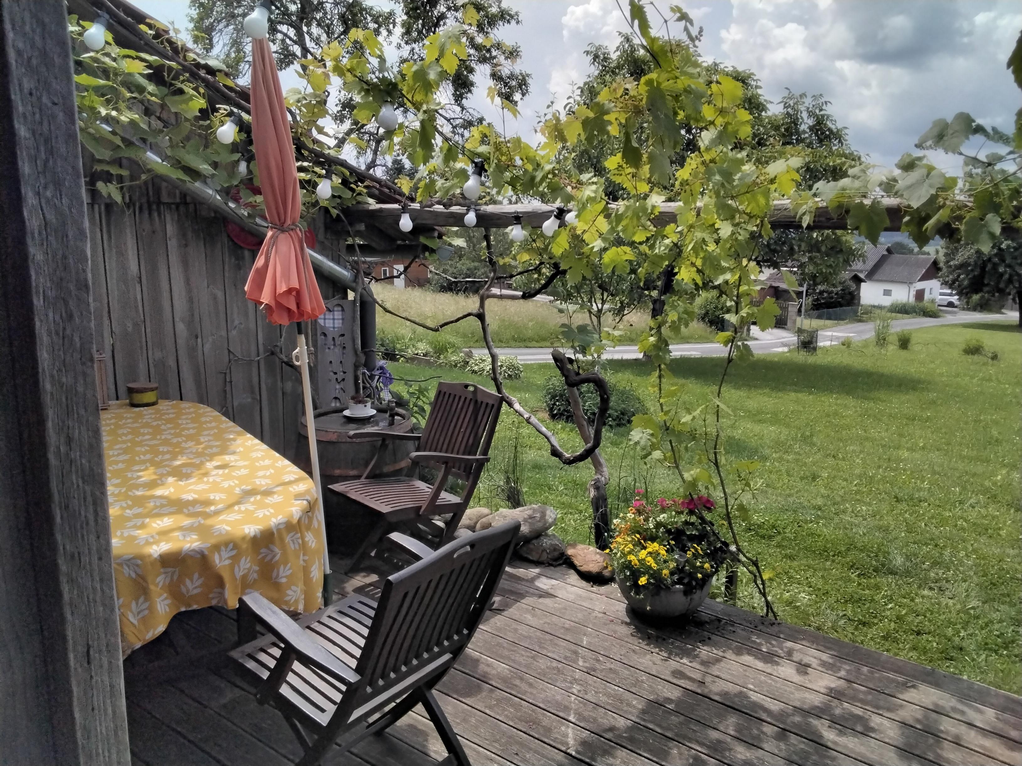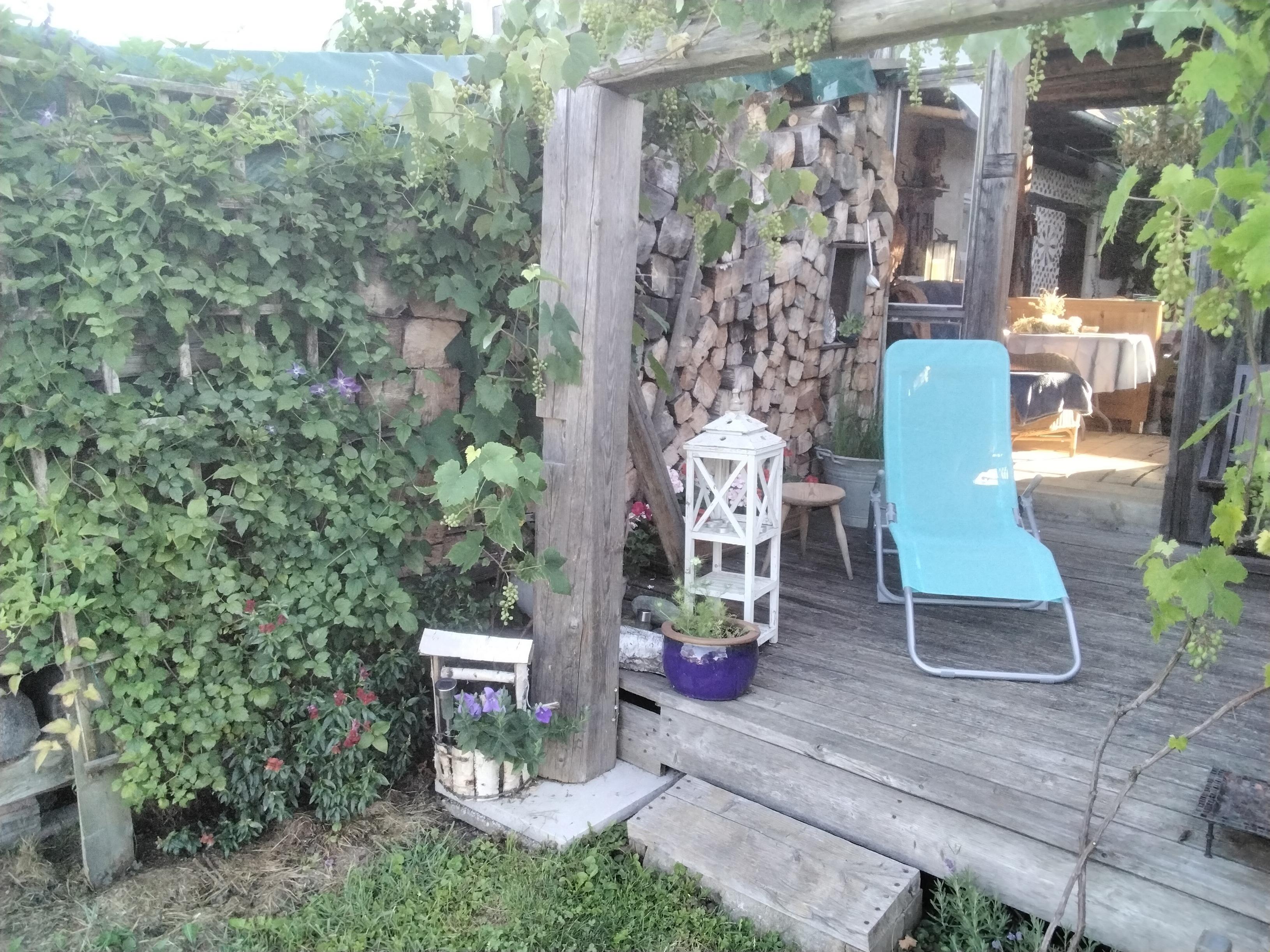 Für den abendlichen Schlummertrunk ist die schöne Terrasse ideal. In der Unterkunft finden Sie neben einem Kühlschrank auch eine Mikrowelle und eine Kaffeemaschine.
