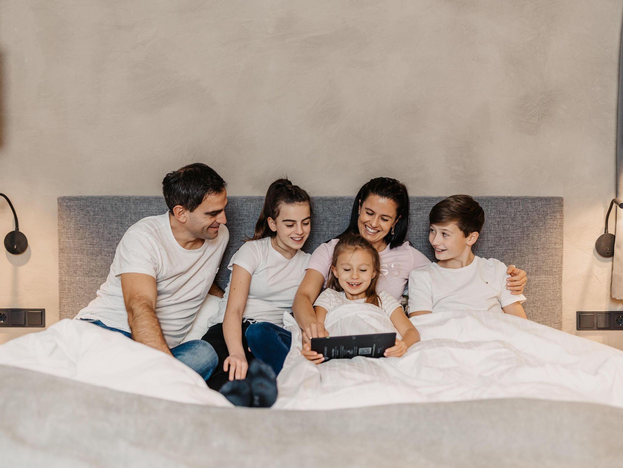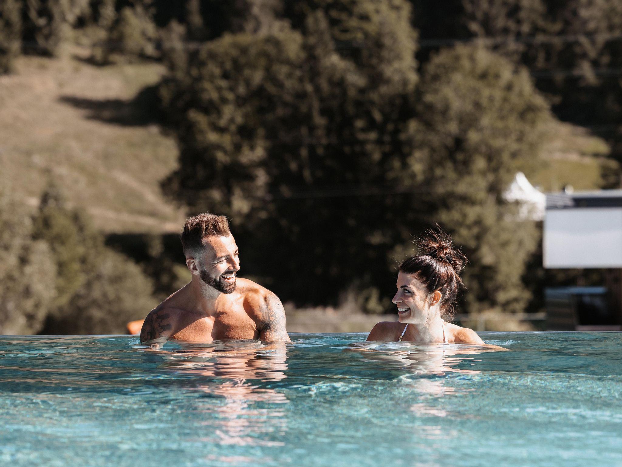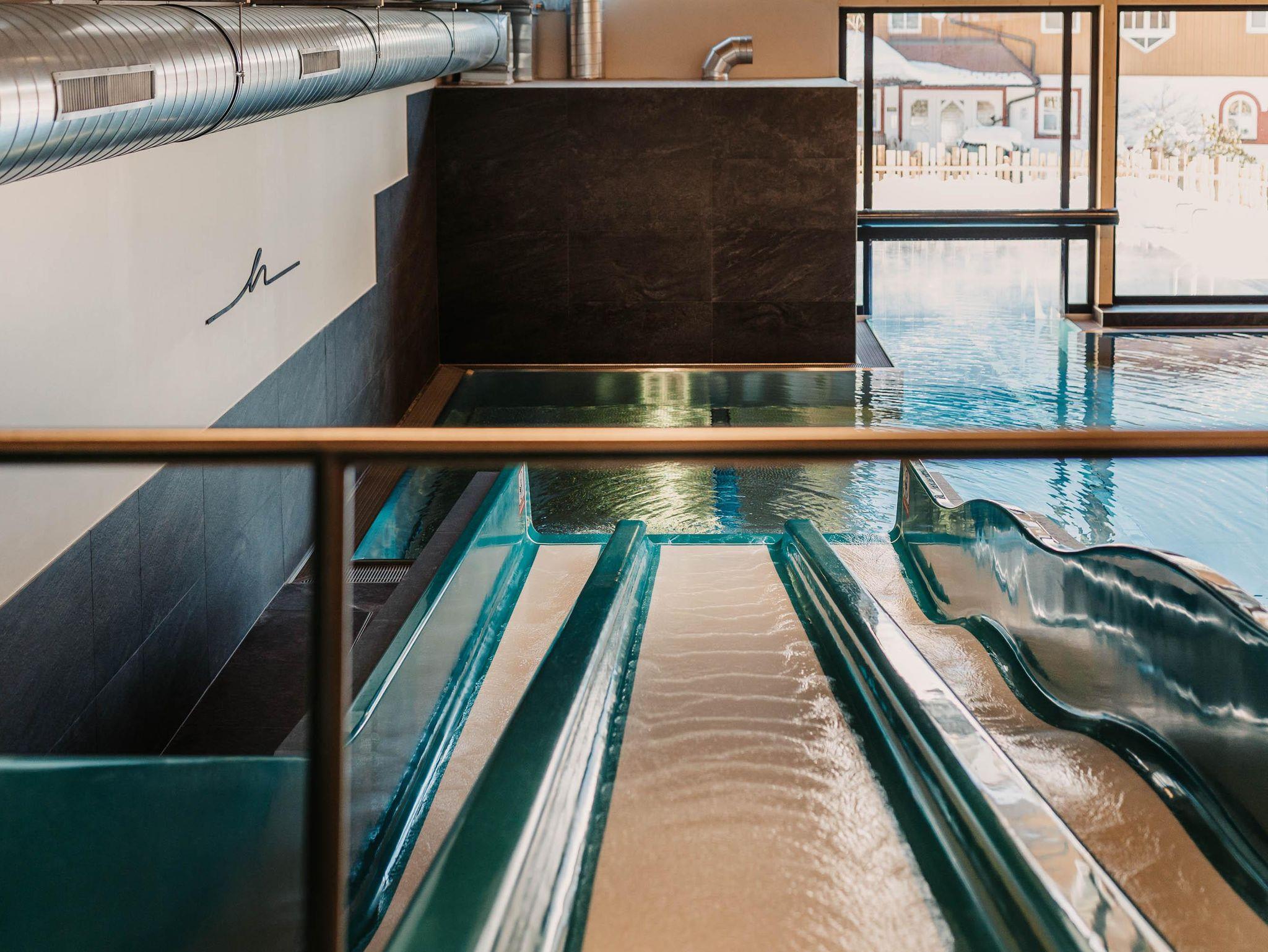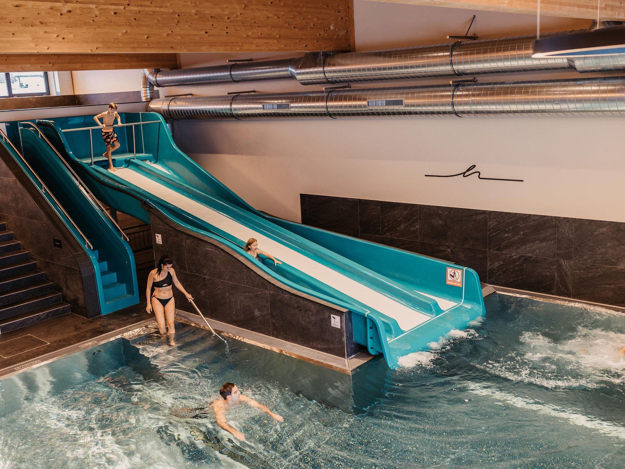 • Indoor Family Pool mit beheiztem Außenschwimmbecken, Kinderwasserrutsche, Textilsauna