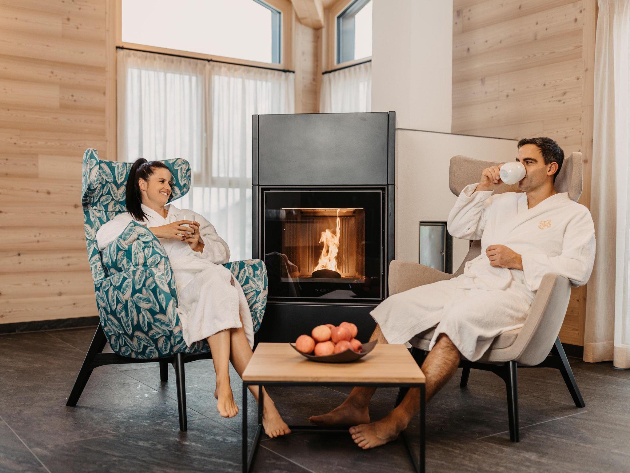 • Indoor Family Pool mit beheiztem Außenschwimmbecken, Kinderwasserrutsche, Textilsauna