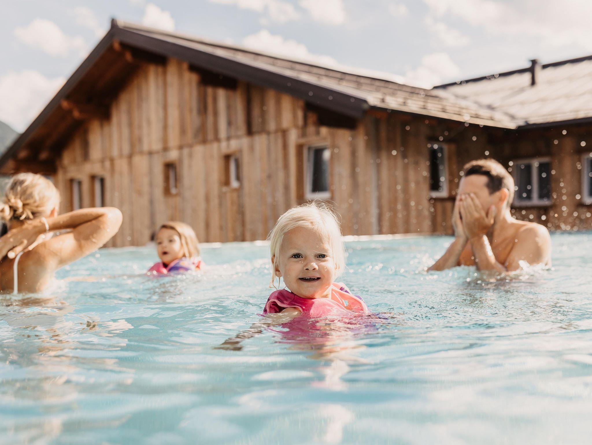 • Indoor Family Pool mit beheiztem Außenschwimmbecken, Kinderwasserrutsche, Textilsauna