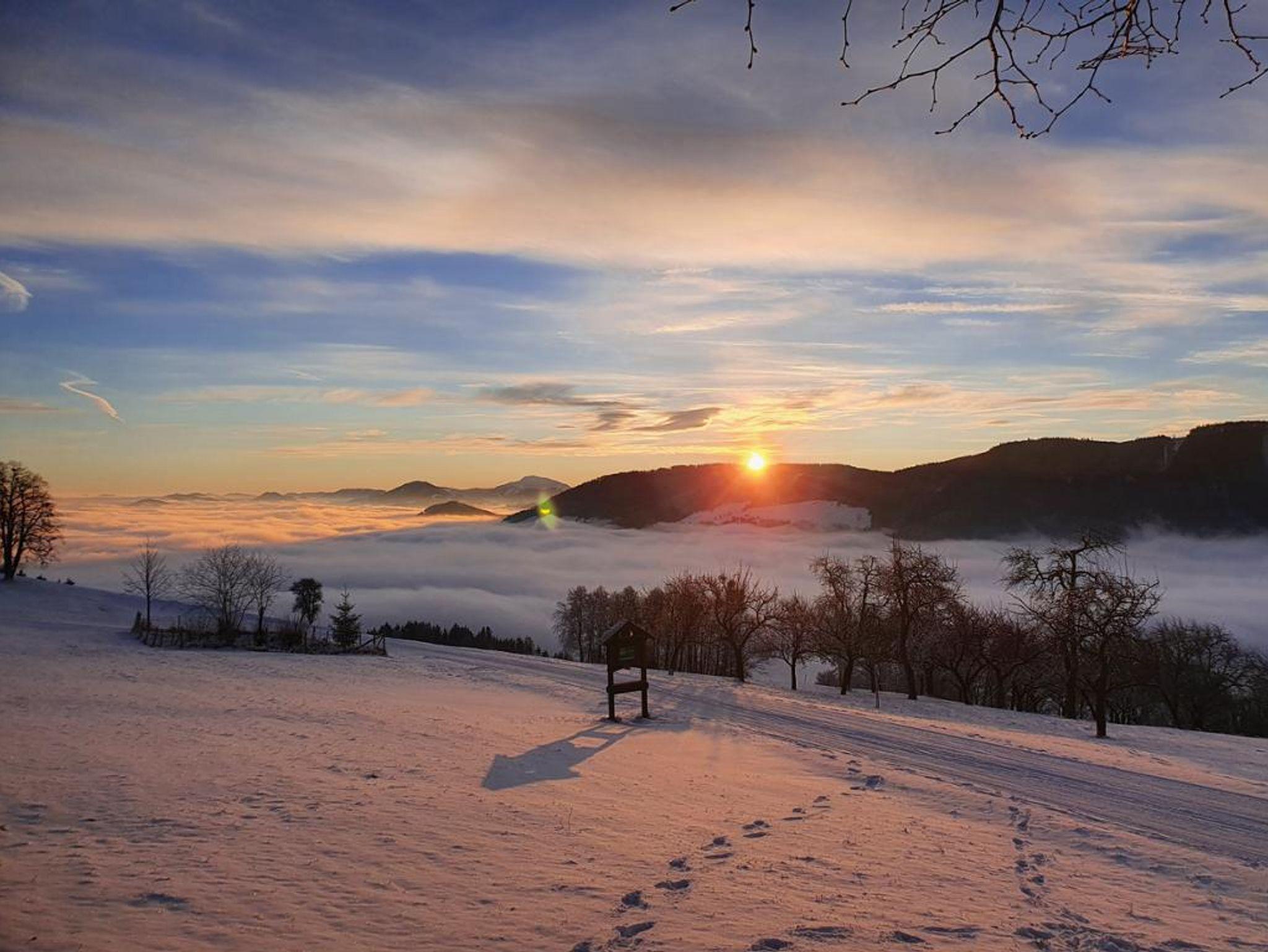 Im Mostviertel auf 820 Metern Seehöhe bietet der Hirschberg einen unvergleichlichen Weitblick in die Ybbstaler Alpen. Die rundum freie Sicht erstreckt sich über den Großen Ötscher, den Prochenberg, das Gesäuse und den Sonntagberg. An klaren Tagen reicht der Blick sogar bis nach Maria Taferl.