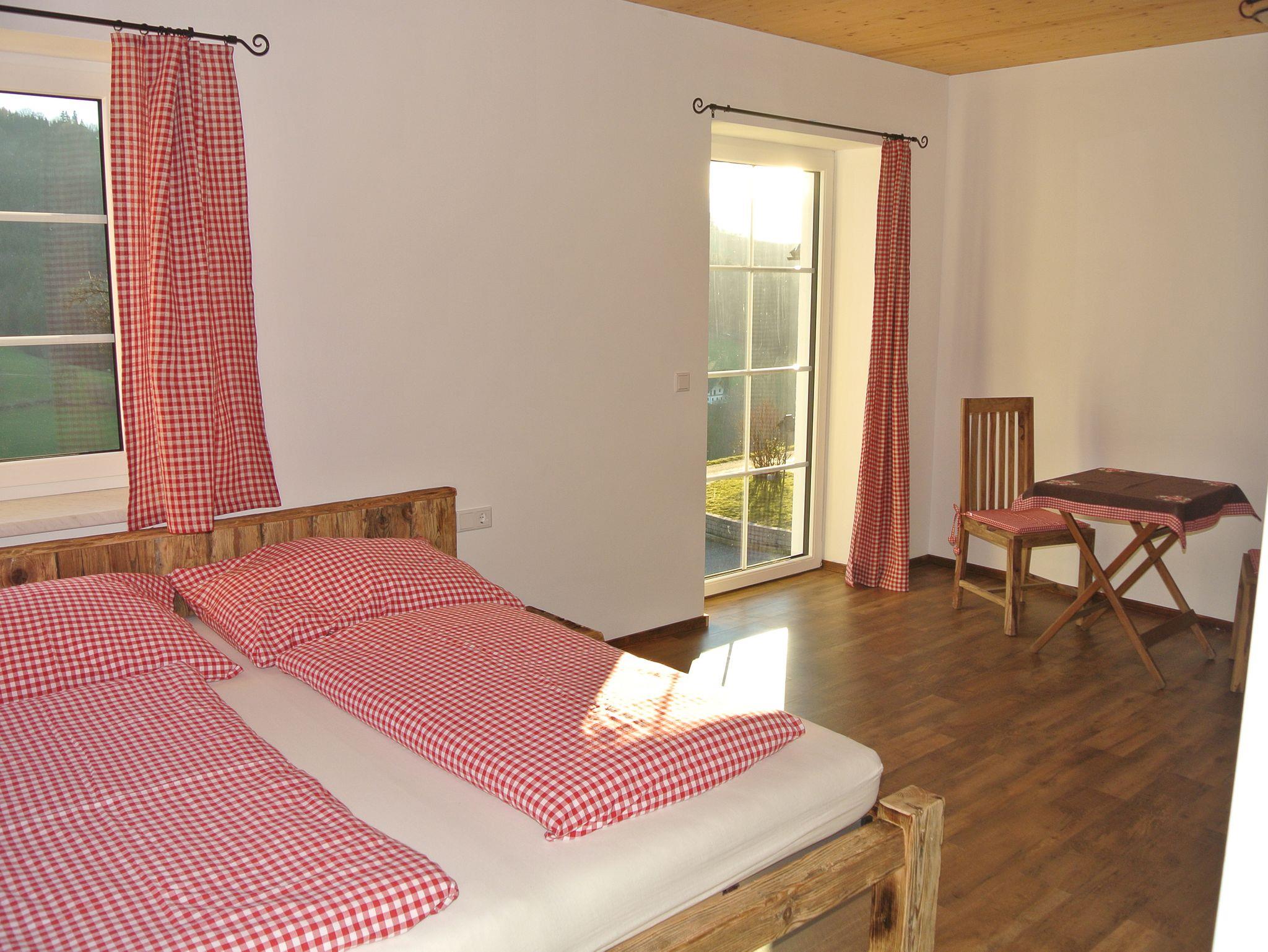 Ein gemütliches nach Süd-Ost ausgerichtetes und im Landhausstil eingerichtetes Doppelzimmer erwartet unsere Gäste hier. Das Besondere in diesem Zimmer sind die selbst gefertigten Möbel aus alten Holz. Ein kleiner Tisch mit Sitzgelegenheit und Zugang zum Balkon mit wunderschönen Ausblick in die freie Natur laden zur Erholung und relaxen ein. Zusätzlich gibt es eine modernes Badezimmer mit Dusche und WC sowie eine kleine Kochnische mit Kühlschrank und TV.