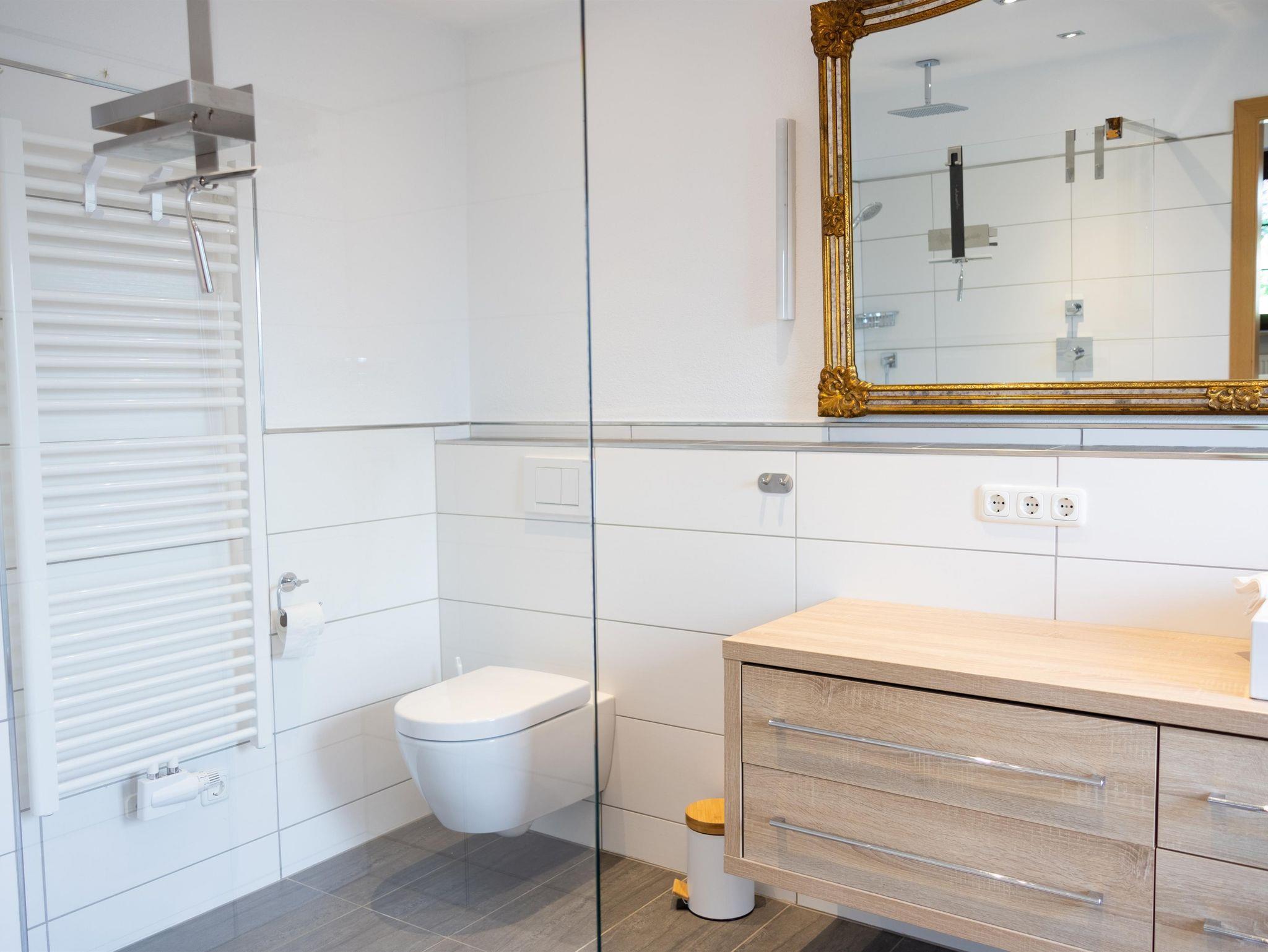 Gäste WC, Wohnzimmer mit TV, Küche, Schlafzimmer mit Doppelbett (1,80 x 2,00) und eigenem Bad