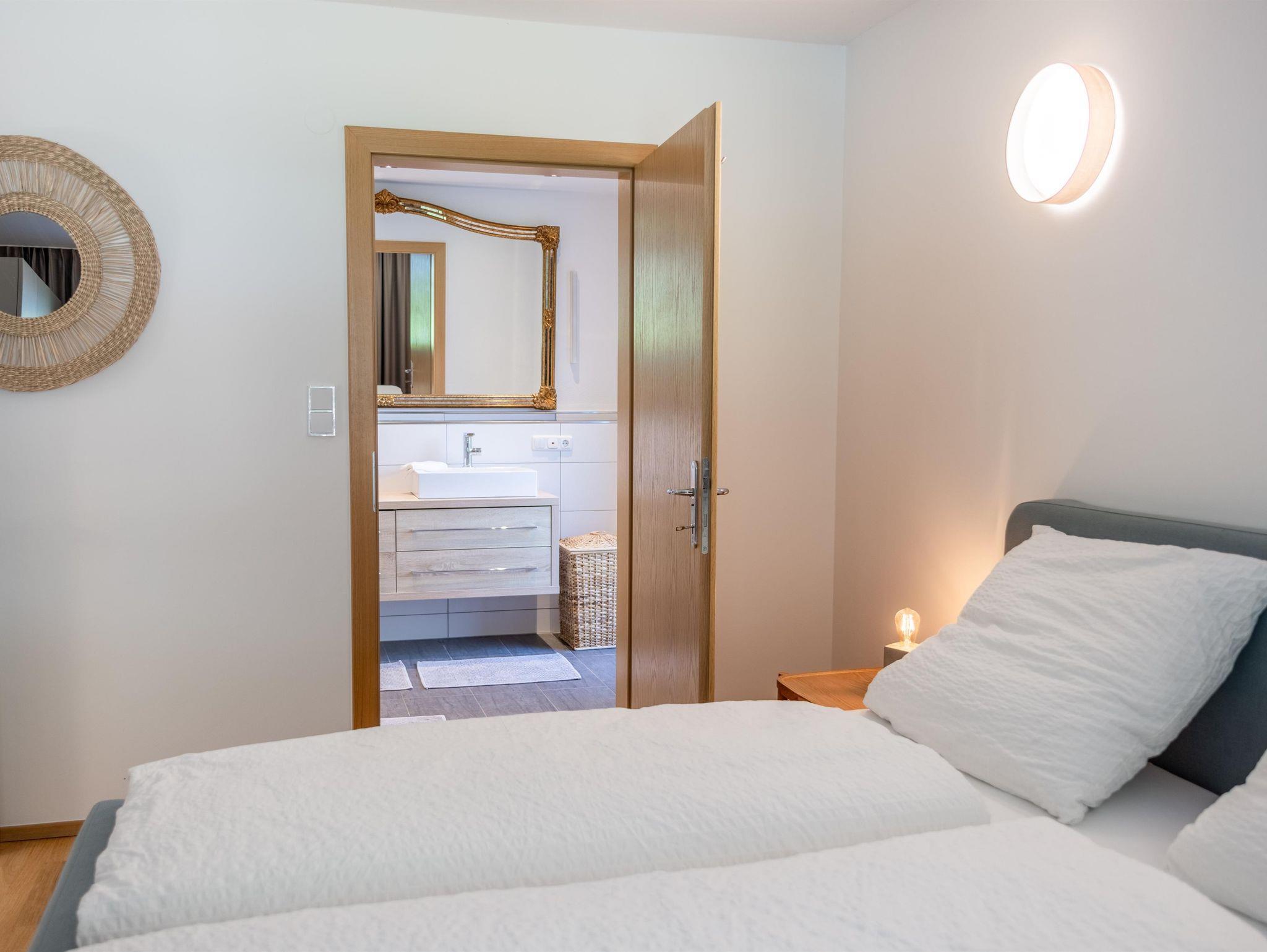 1 Schlafzimmer mit Doppelbett (1,80 x 2,00) und eigenem Bad