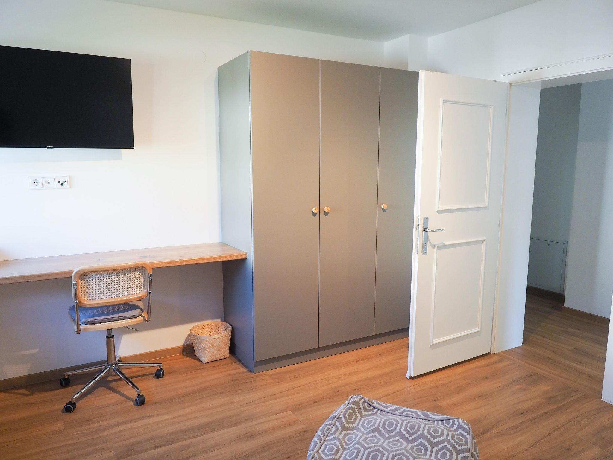 1 Schlafzimmer mit Queensize Bett (1,60 x 2,00) und TV