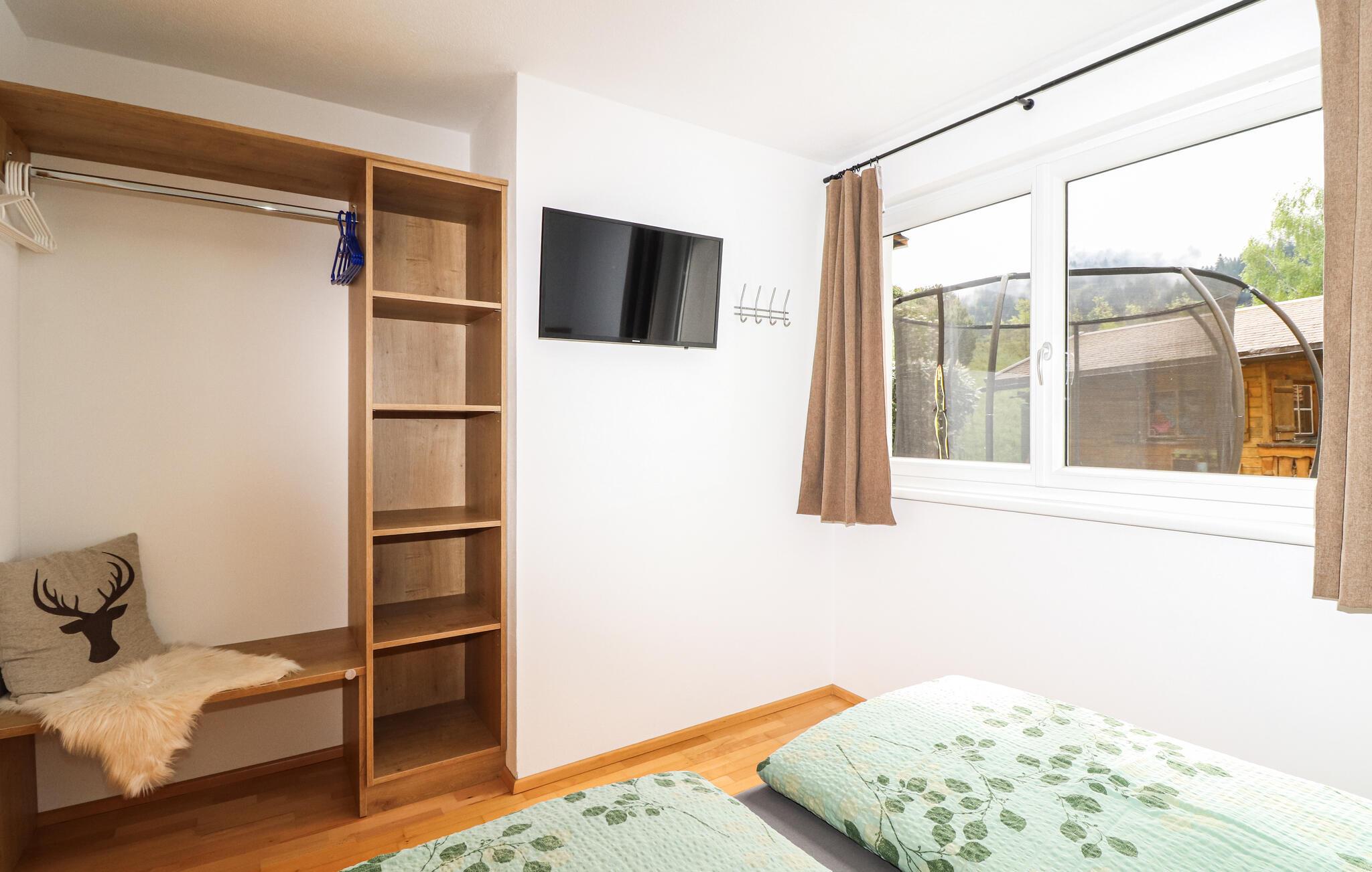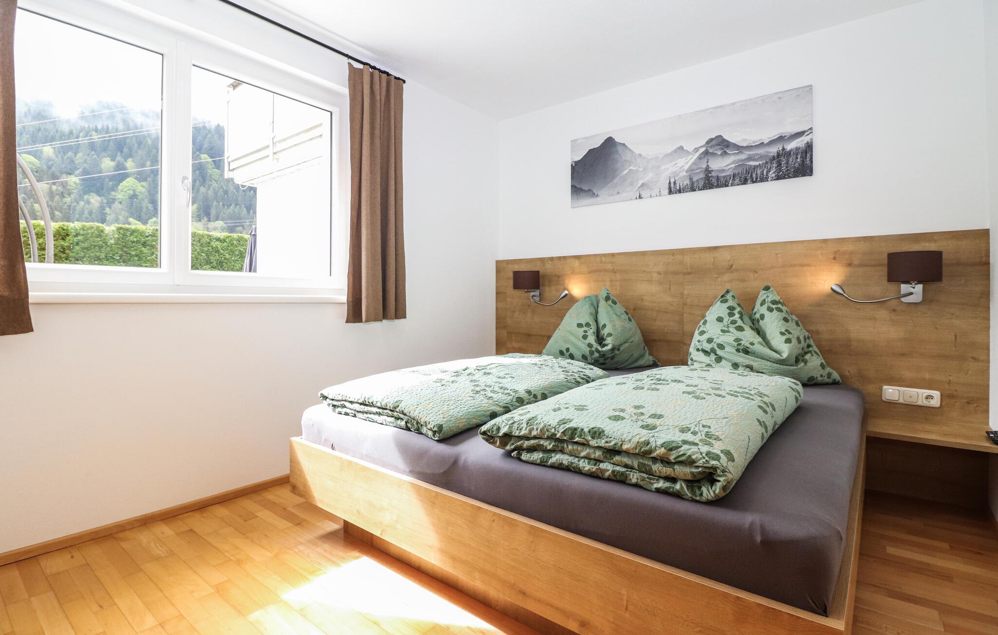 Denne lyse og veludstyrede ferielejlighed tilbyder jer alt, hvad I skal bruge til et afslappende ophold. Opholdsstuen er komfortabelt indrettet og lægger op til afslappende timer efter en begivenhedsrig dag i naturen. Terrassen er det ideelle sted at nyde den friske bjergluft, mens børnene kan slippe dampen af ??på de mange legeredskaber i den fælles have.
