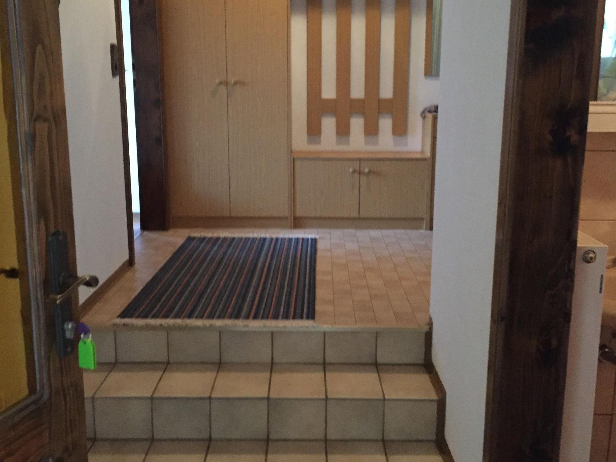 Unsere Ferienwohnung besteht aus einem Vorraum, Bad mit WC, einer Wohnküche mit 2 Sofas und einem Schlafzimmer mit Doppelbett, und einem Abstellraum - bei uns heisst es: die Speis'. Dort befindet sich auch der Kühlschrank und die Gefriertruhe mit dem Frühstücksgebäck. Die Küche ist mit einem Elektroherd mit Backrohr ausgestattet, es gibt auch einen Minibackofen, Mikrowelle, Wasserkocher und eine Kaffeemaschine. Ess- und Kochgeschirr ist vorhanden und ein TV-Gerät ist im Wohnbereich angebracht. Die Essgruppe bietet genug Platz für vier Personen. Die beiden Sofas können in Betten umgewandelt werden. Im Schlafzimmer befindet sich ein Doppelbett und ein Kleiderschrank. Das Badezimmer ist mit Dusche ausgestattet, das WC kann mit einer Falttüre abgetrennt werden.