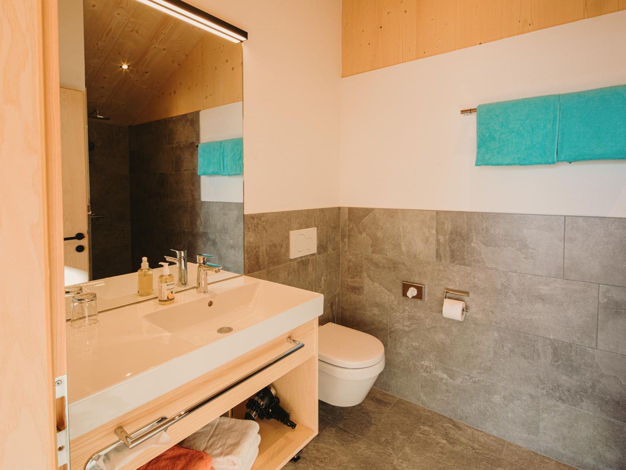 Eines unserer zwei Herzstücke, die Panoramasuite Sunny Alpin im Dachgeschoss, lässt Euer Herz höherschlagen und erfüllt Eure Seele mit Sonnenstrahlen, die durch die große Süd-Glasfront hereinfallen. Großfamilien mit Oma und Opa im Gepäck oder eine Runde mit deinen Herzensmenschen, hier findet ihr Euer perfektes Urlaubsdomizil. Umgeben von Fichtenvollholz, eingerichtet mit natürlichen Materialien in Kombination mit dunklen Akzenten besticht diese Suite mit einer exklusiven Ausstattung. Drei separate Schlafzimmer, davon zweimal mit Doppelbetten und Glasfaser-TV eingerichtet, das dritte Zimmer bietet zwei Stockbetten. Großzügiger und offen gestalteter Wohn-Essbereich mit vollausgestatteter Küche (ohne Mikrowelle) und Glasfaser-TV. Zwei Badezimmer mit Walk-In Regendusche und WC’s. Telefon, Safe und kostenloses WLAN.