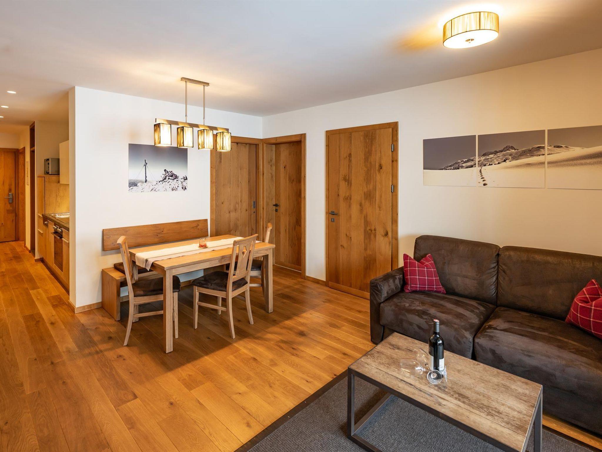 Das Appartement Blanka ist 58 m2 groß und verfügt über 2 Doppelzimmer. Heller, großzügiger Wohnraum mit Essbereich und Sofa, sowie voll ausgestatteter Küche und Garderobe. Das Badezimmer ist ausgestattet mit einem Doppelwaschbecken, Dusche und WC sowie weiterem separatem WC. Der große Balkon zeigt nach Süden in Richtung Skigebiet und Loipe!