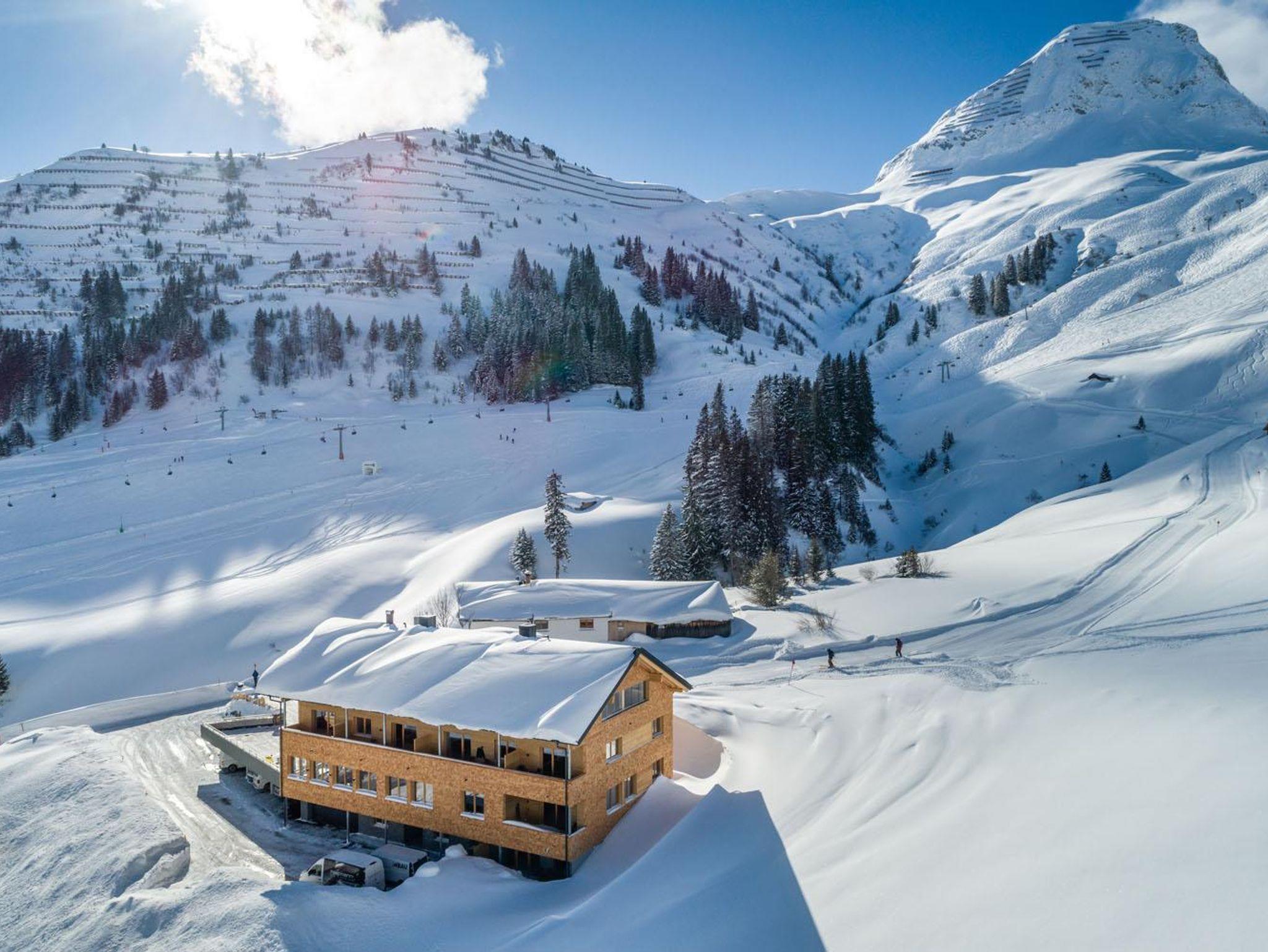 auf einer kleinen Anhöhe gelegen bieten wir Ihnen einen traumhaften Ausblick über das Dorf Warth und seine markanten Felsriesen! Bei uns können Sie direkt vor der Haustüre in die Ski- und Wanderwelt einsteigen und das ganz ohne Bus oder Auto!