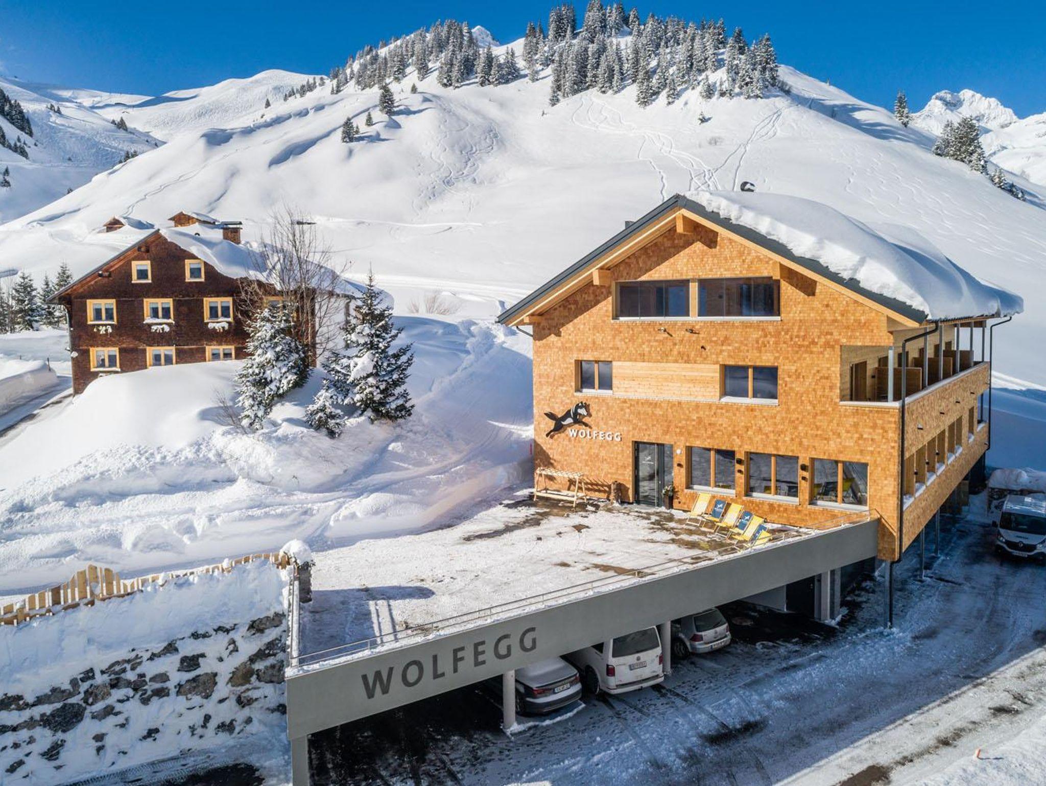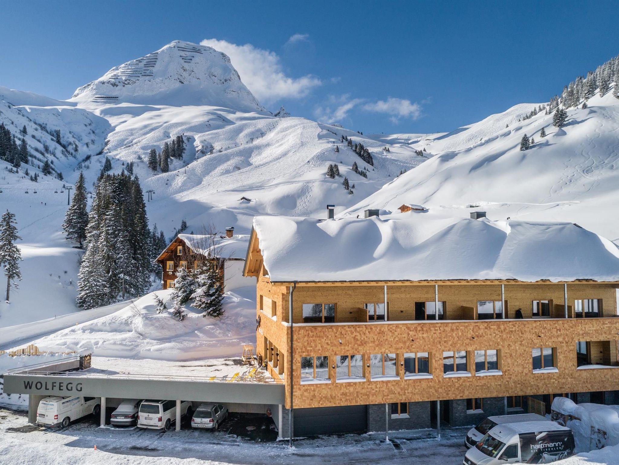 auf einer kleinen Anhöhe gelegen bieten wir Ihnen einen traumhaften Ausblick über das Dorf Warth und seine markanten Felsriesen! Bei uns können Sie direkt vor der Haustüre in die Ski- und Wanderwelt einsteigen und das ganz ohne Bus oder Auto!