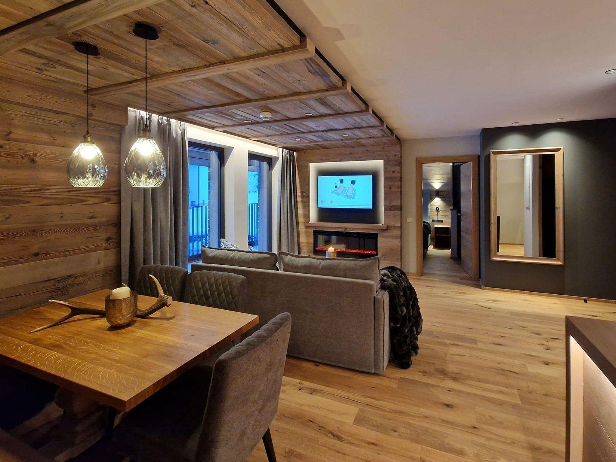 78-90m² Lodge Feeling | Getrennter Schlaf- & Wohnraum | 2 Schafzimmer mit großen Boxspring-Betten | 1-2 Zusatz Sofabetten möglich | 2 Badezimmer mit Wellnessdusche oder Wanne, WC | Terrasse oder Balkon mit herrlichem Postkartenblick auf das atemberaubende Bergpanorama | großzügiger Wohnraum mit wärmenden Effekt-Feuer oder Kachelofen | Haartrockner & Kosmetikspiegel | Beauty & Vanity Produkte | Handtücher & Bademäntel für Erw. für unser Alpen Spa | voll ausgestattete Küche mit Elektroherd, Backrohr, Mikrowelle, Kühlschrank, Nespresso Maschine, Wasserkocher, Spühlmaschine, Ess- und Kochgeschirr | TV in allen Wohn- und Schlafbereichen, WIFI |