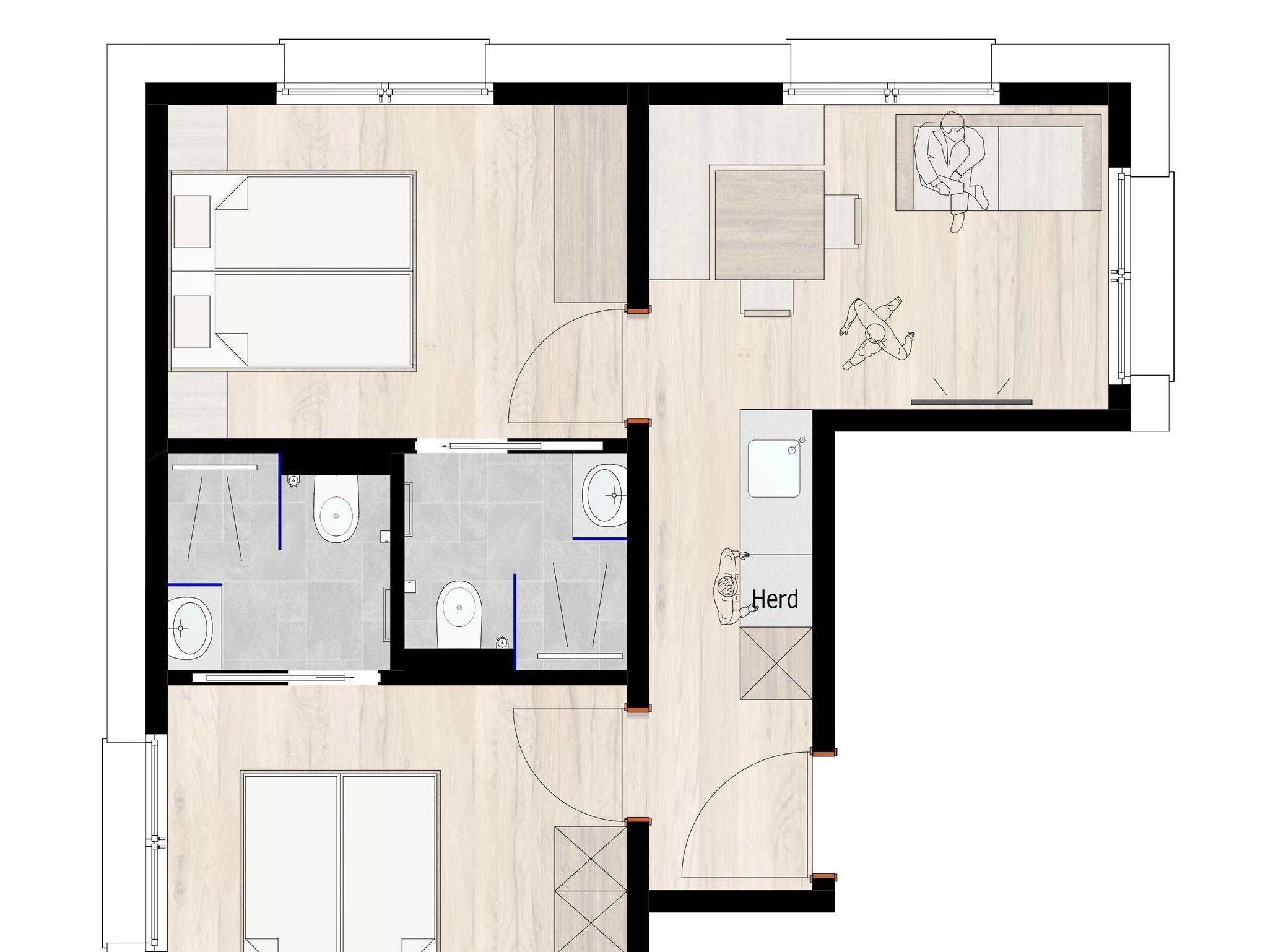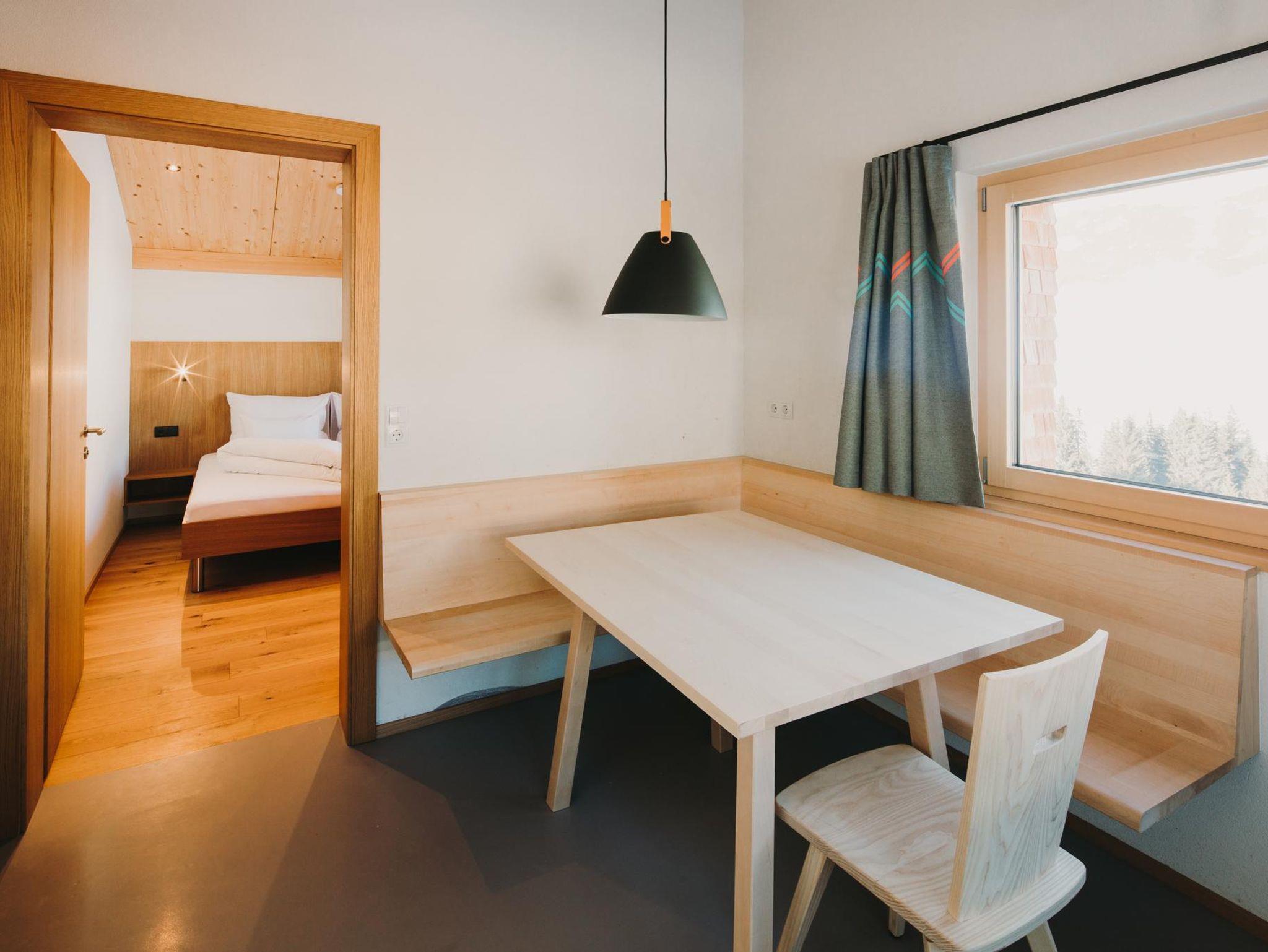 Unser kompaktes Raumwunder! Perfekt für Familien mit zwei Kindern oder zwei befreundete Pärchen, in der Familiensuite Alpin 88 findet ihr alles, was Euer Herz begehrt. Offen gestalteter und gemütlicher Wohnraum mit Essbereich und Glasfaser-TV, voll ausgestattete Küche (ohne Mikrowelle) aus hellem Ahornholz. Zwei getrennte Doppelzimmer mit jeweils eigenem Badezimmer mit Dusche und WC, eingerichtet mit beruhigendem und erdendem Eichenholz. Highlight: mit der Morgensonne frühstücken. Die Familiensuite Alpin 88“ befindet sich im Nebengebäude, welches unterirdisch mit dem Hauptgebäude verbunden ist und verfügt über keinen Balkon. Safe und kostenloses WLAN vorhanden.