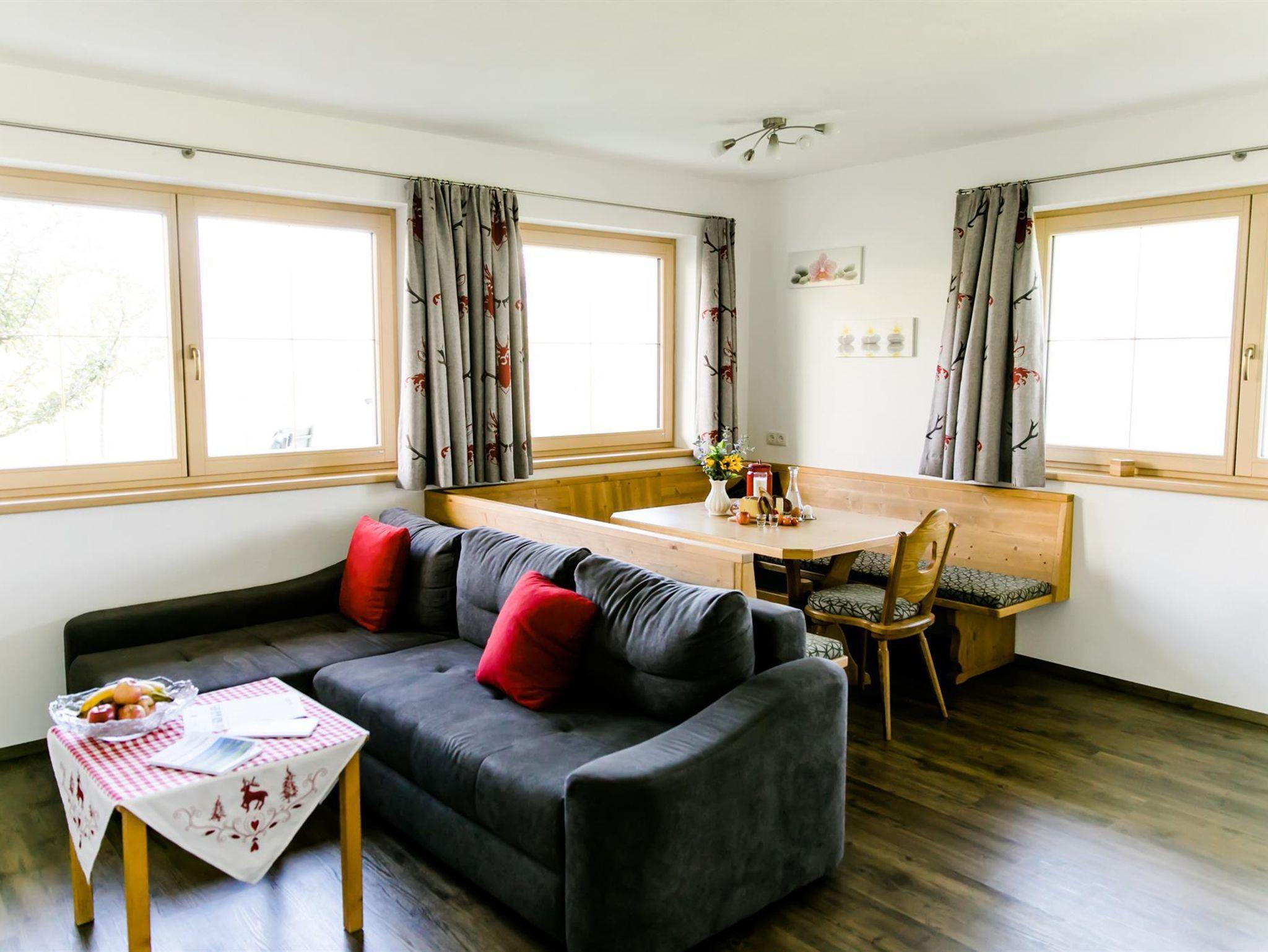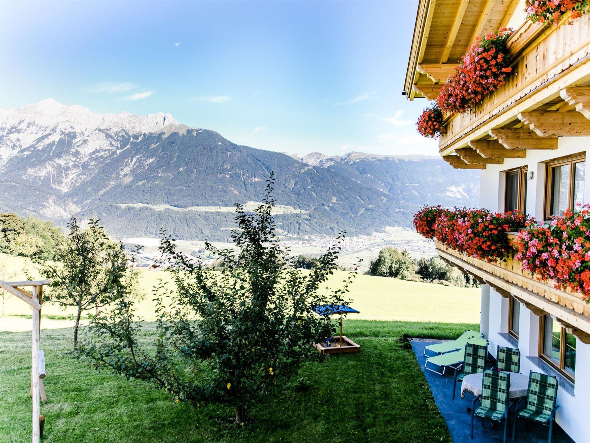 Genießen Sie den einmaligen, wunderschönen Ausblick auf das gegenüberliegende Karwendelgebirge und das darunterliegende Inntal aus allen Räumen.
