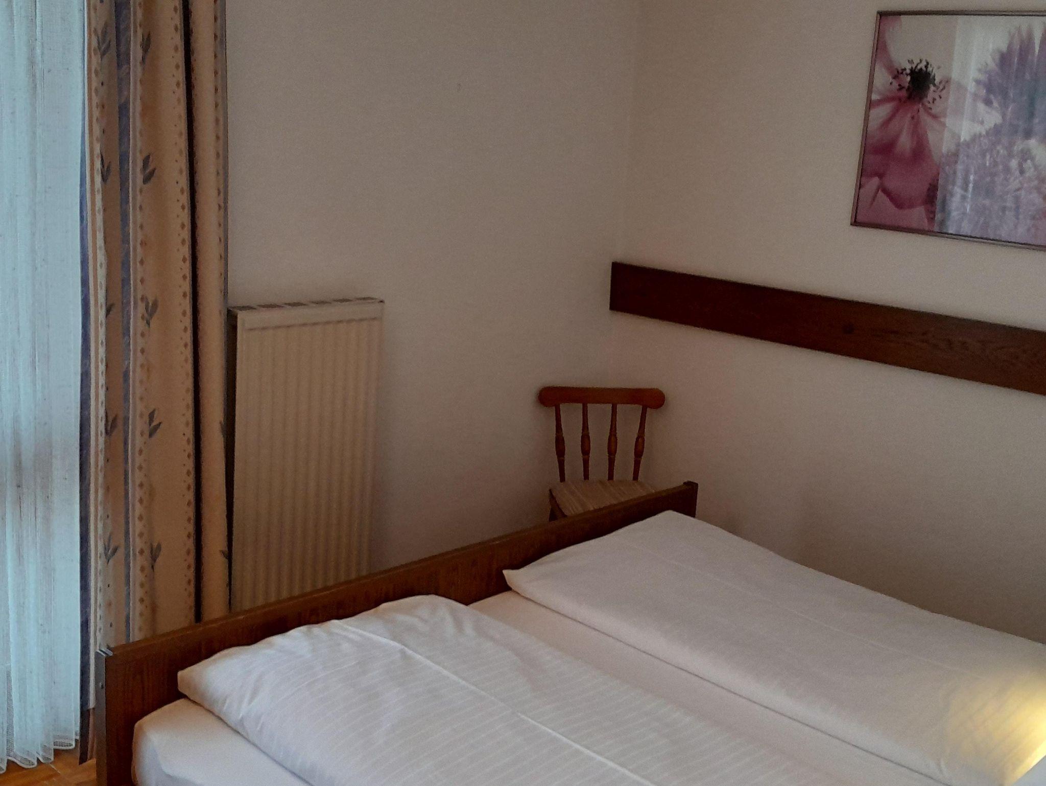 1 Schlafzimmer mit 1 Queensizebett, WC/Dusche getrennt, SAT-TV, Radio, Telefon, Zimmersafe, Brötchenservice, Balkon, Gratis W-LAN.