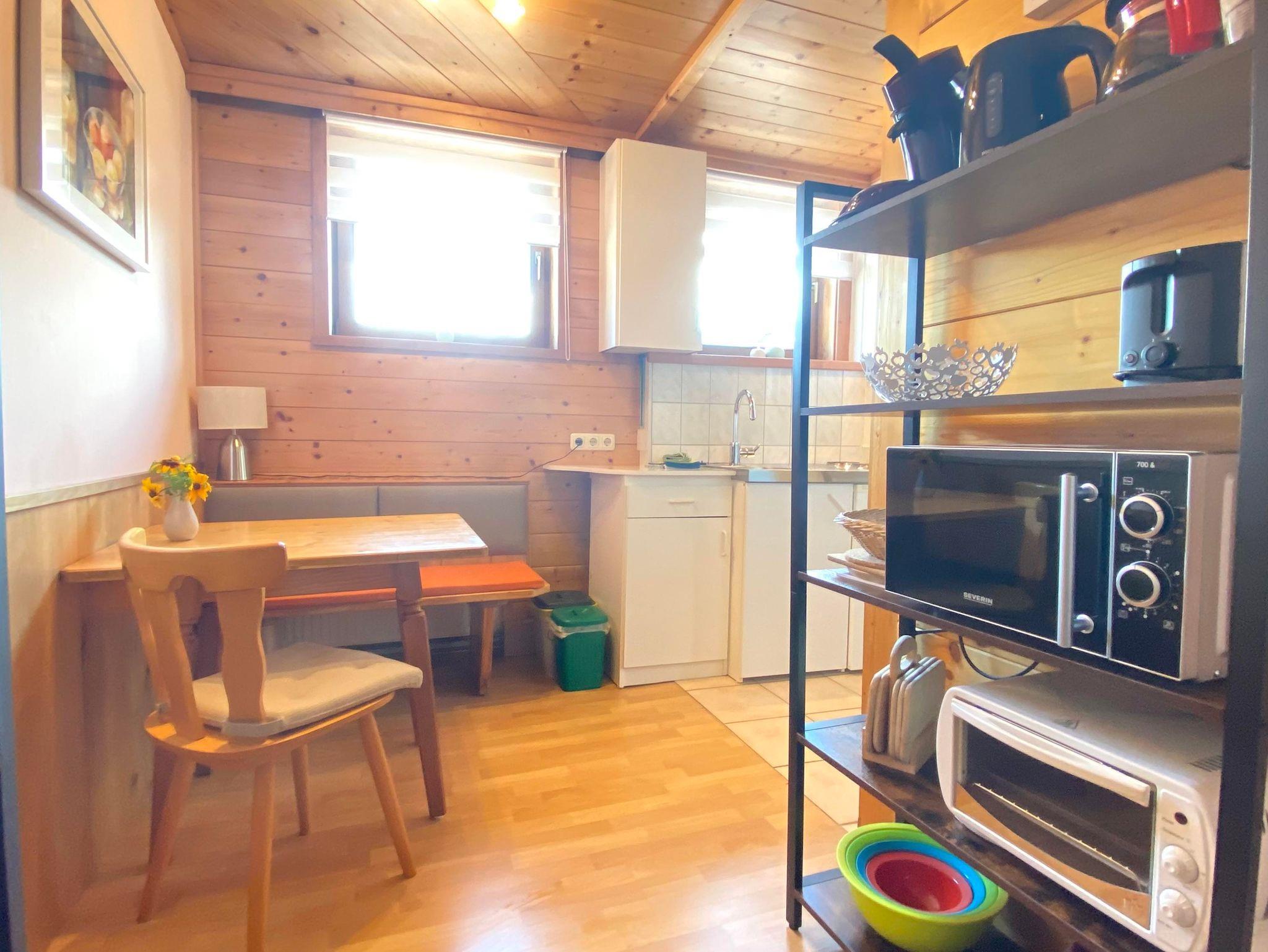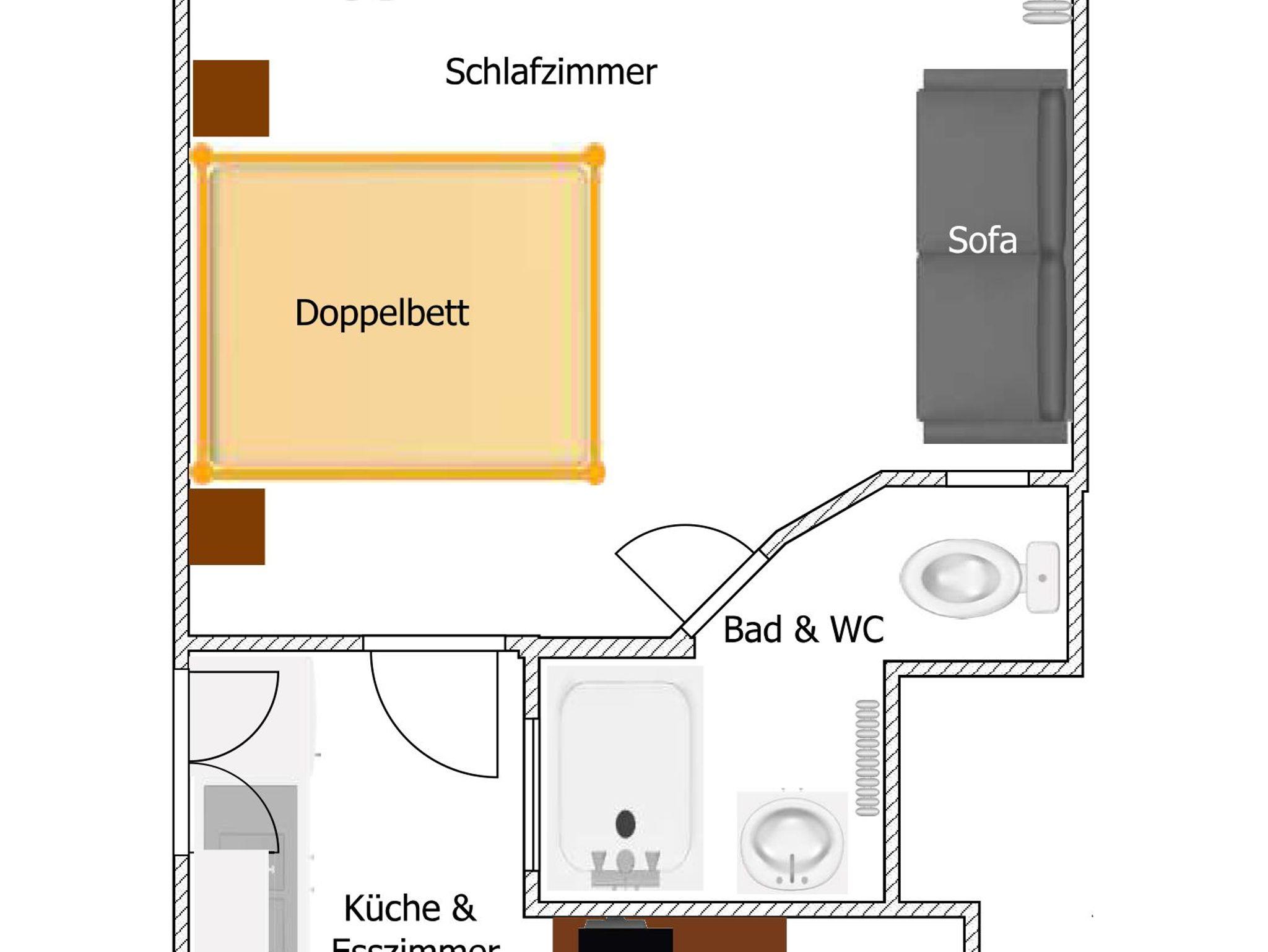 Schöne gemütliche Wohnung mit ca. 28m². Kochnische mit 2 Herdplatten, Mikrowelle, Toaster, Minibackofen, Kühlschrank mit kleinem Gefrierfach, Filterkaffeemaschine und Senseo-Padmaschine, Wasserkocher, Koch- und Essgeschirr, Bettwäsche, Handtücher & Geschirrtücher einmalig vorhanden, Fön, Sat-TV, Badezimmer mit Dusche, Waschbecken und WC, kleiner Balkon. Ein Schlafzimmer mit Ehebett.