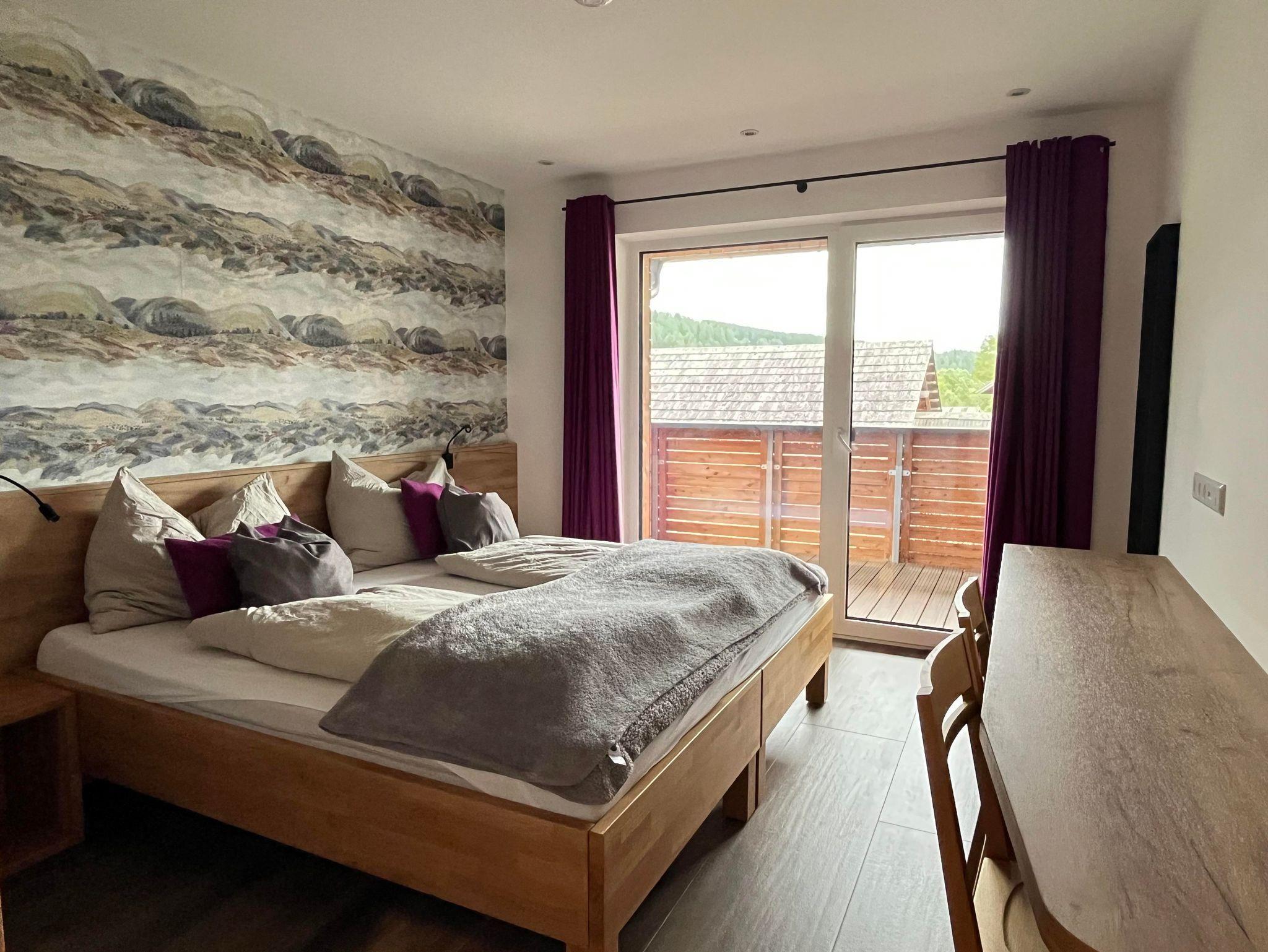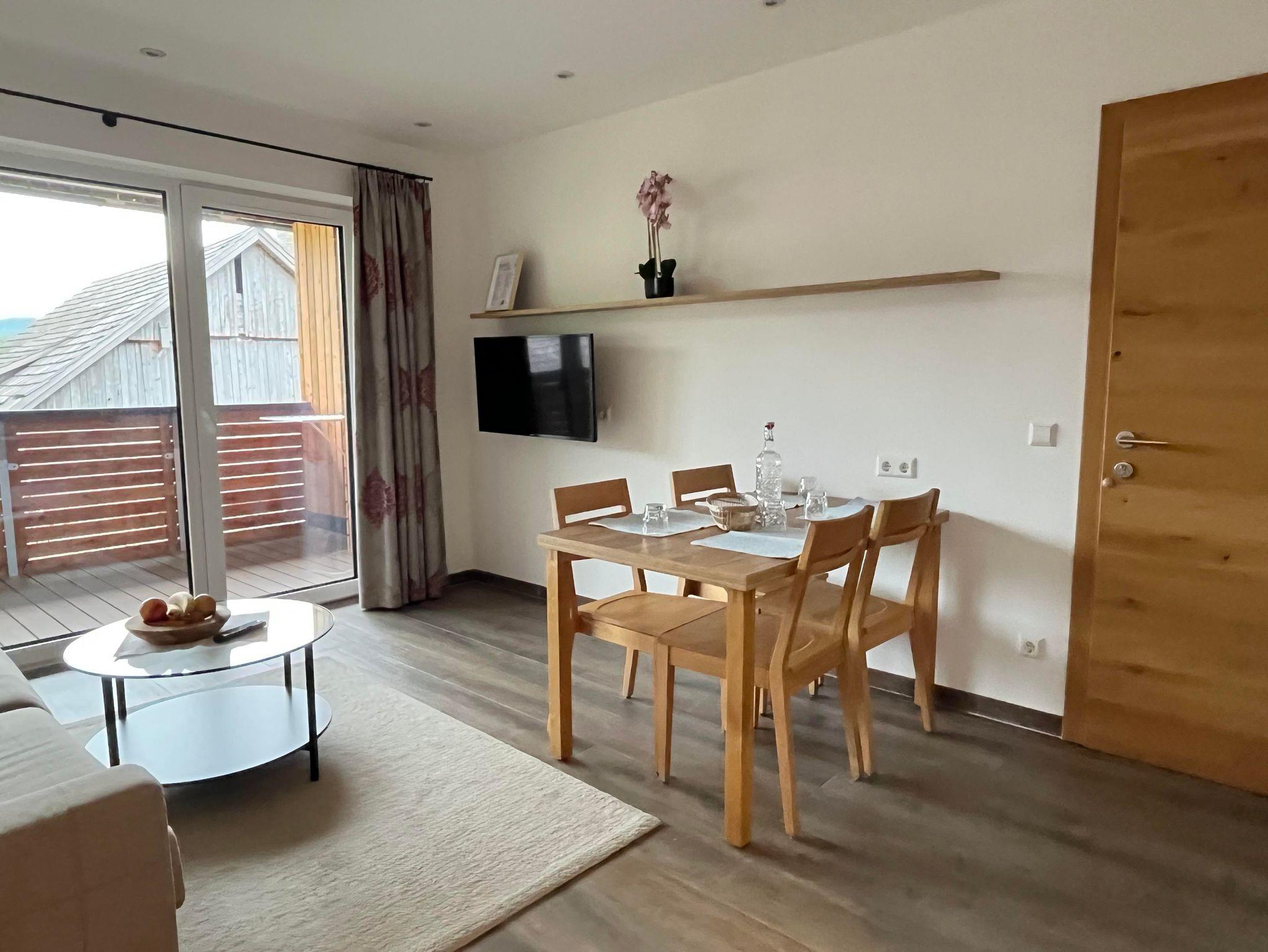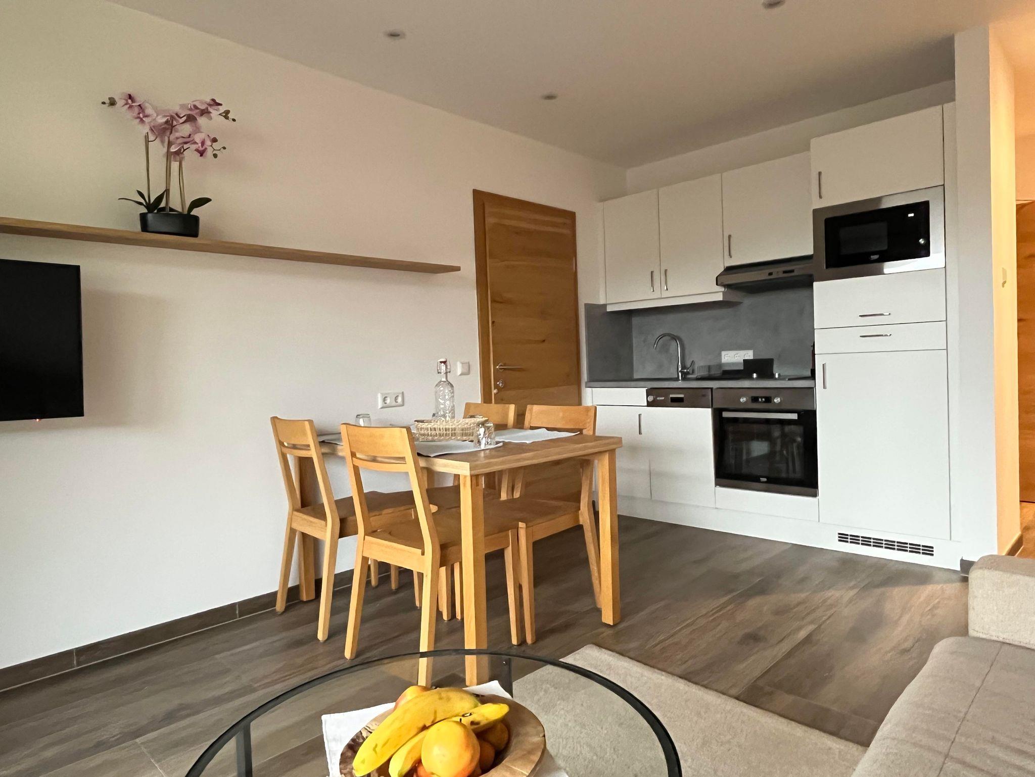 Die Appartements überzeugen mit hellen, lichtdurchfluteten Räumen, einem offenen Koch-, Ess- und Wohnbereich mit gemütlicher Schlafcouch sowie direktem Zugang zu Balkon oder Garten. Von dort hast du einen traumhaften Blick auf die umliegende Bergwelt. Das großzügige 3-Zimmer-Appartement bietet dir zwei Schlafzimmer – eines davon mit Etagenbett – und ein modernes Badezimmer mit Walk-In-Dusche.