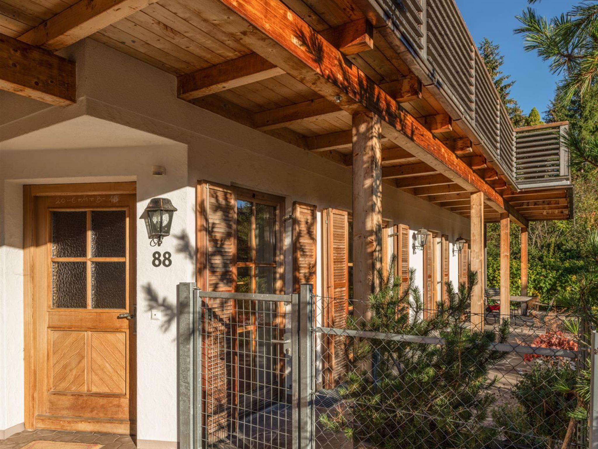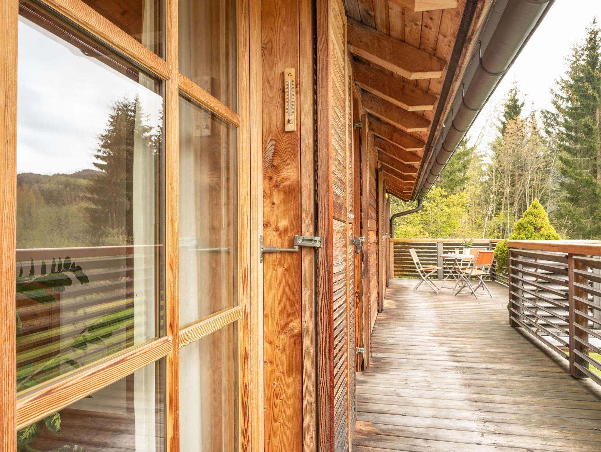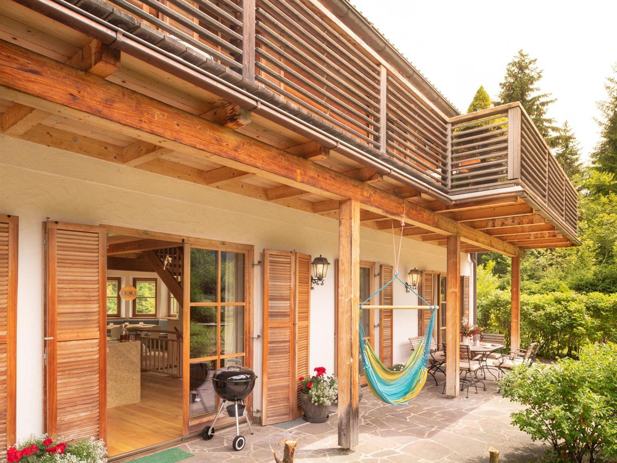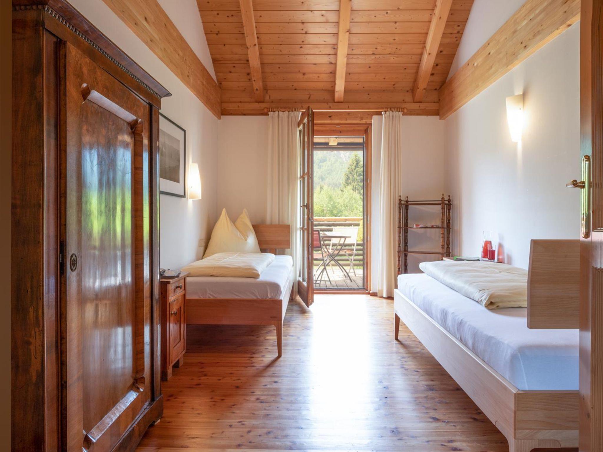 Das große, komplett offen gestaltete Erdgeschoß bietet eine gut ausgestattete Küche mit Küchenblock (G), einen großen Wohnraum mit zentralem Kamin (H), eine Panorama-Sitzecke (I) und einen weiteren Esstisch am Kamin. Eine gemütliche Sofalandschaft fehlt natürlich auch nicht. Für Seminare steht der 45?m2 große Gruppenraum mit wunderbarem Blick auf die umliegenden Wiesen und Wälder und getrenntem Eingang zur Verfügung (J).Es besteht aus einem großen Schlafzimmer mit Doppelbett, eigenem geräumigen Bad mit Wanne und Duschkabine (A & B), einem Schlafzimmer mit zwei Einzelbetten (C), einem Schlafzimmer mit Doppelbett (D) und einem gemeinsamen Bad (E). Alle Schlafzimmer haben direkten Zugang zum großen Balkon. Zweifellos das Highlight für Kids ist die „Zwergenstube“ - ein kleines Zimmer mit Dachschräge und zwei Kinderbetten (F).