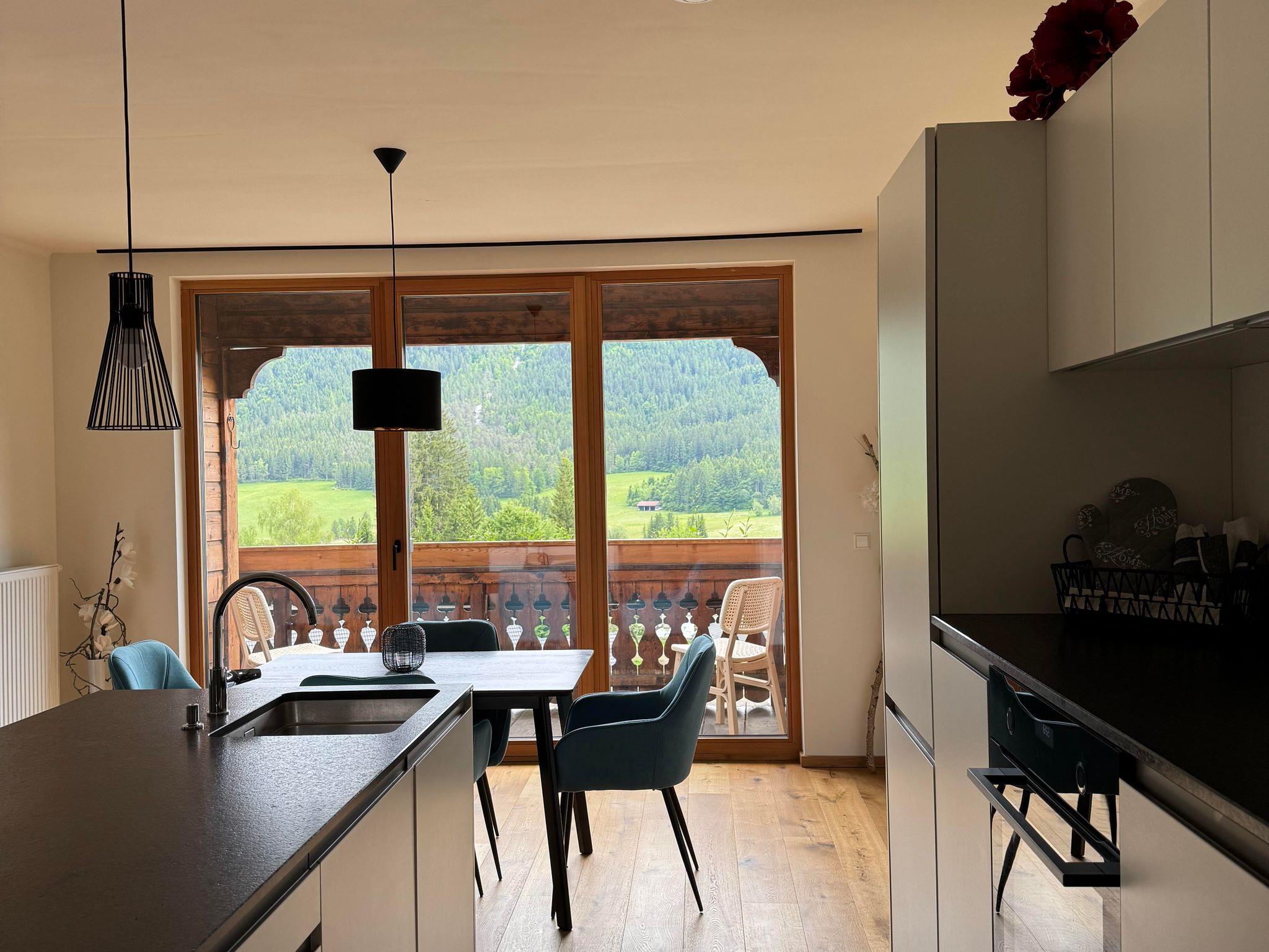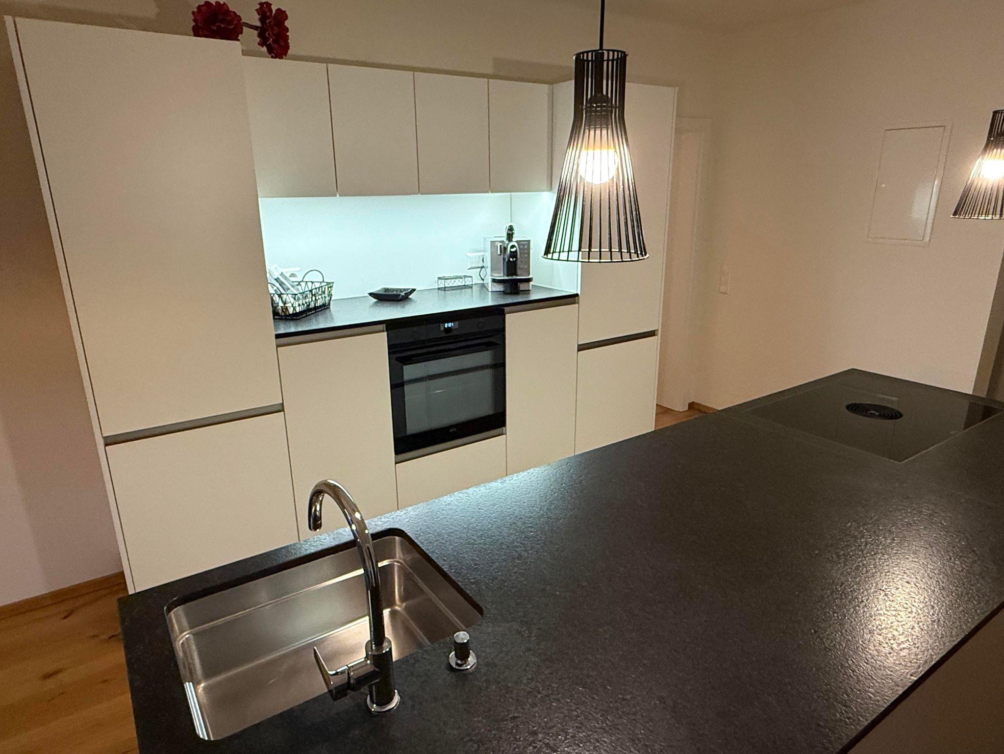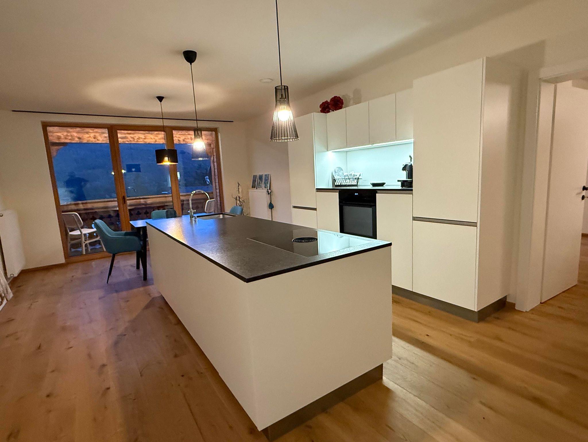 Die Wohnung verfügt über zwei Schlafzimmer mit je einem Doppelbett. Ein gemütlicher Wohnraum mit kuschligem Sofa, eine offene, bestens ausgestattete Küche, ein Essplatz mit Aussicht und ein komfortables Badezimmer bieten beste Voraussetzungen für einen schönen, erholsamen Urlaub.