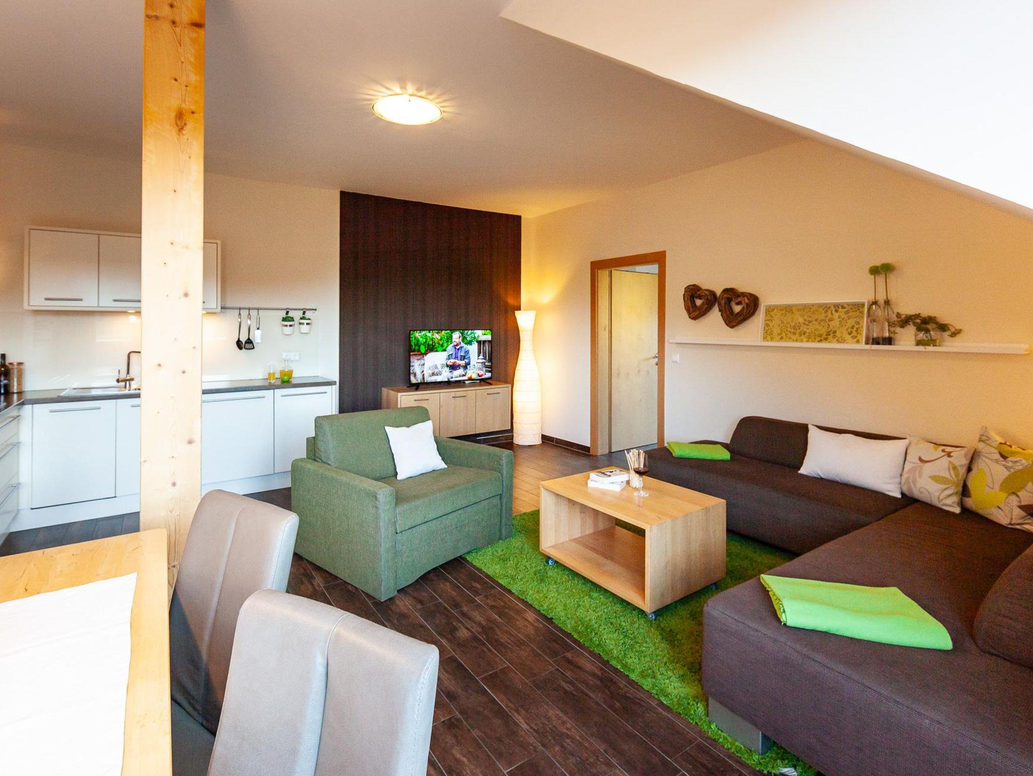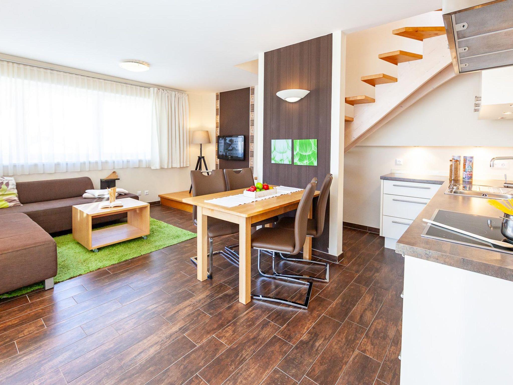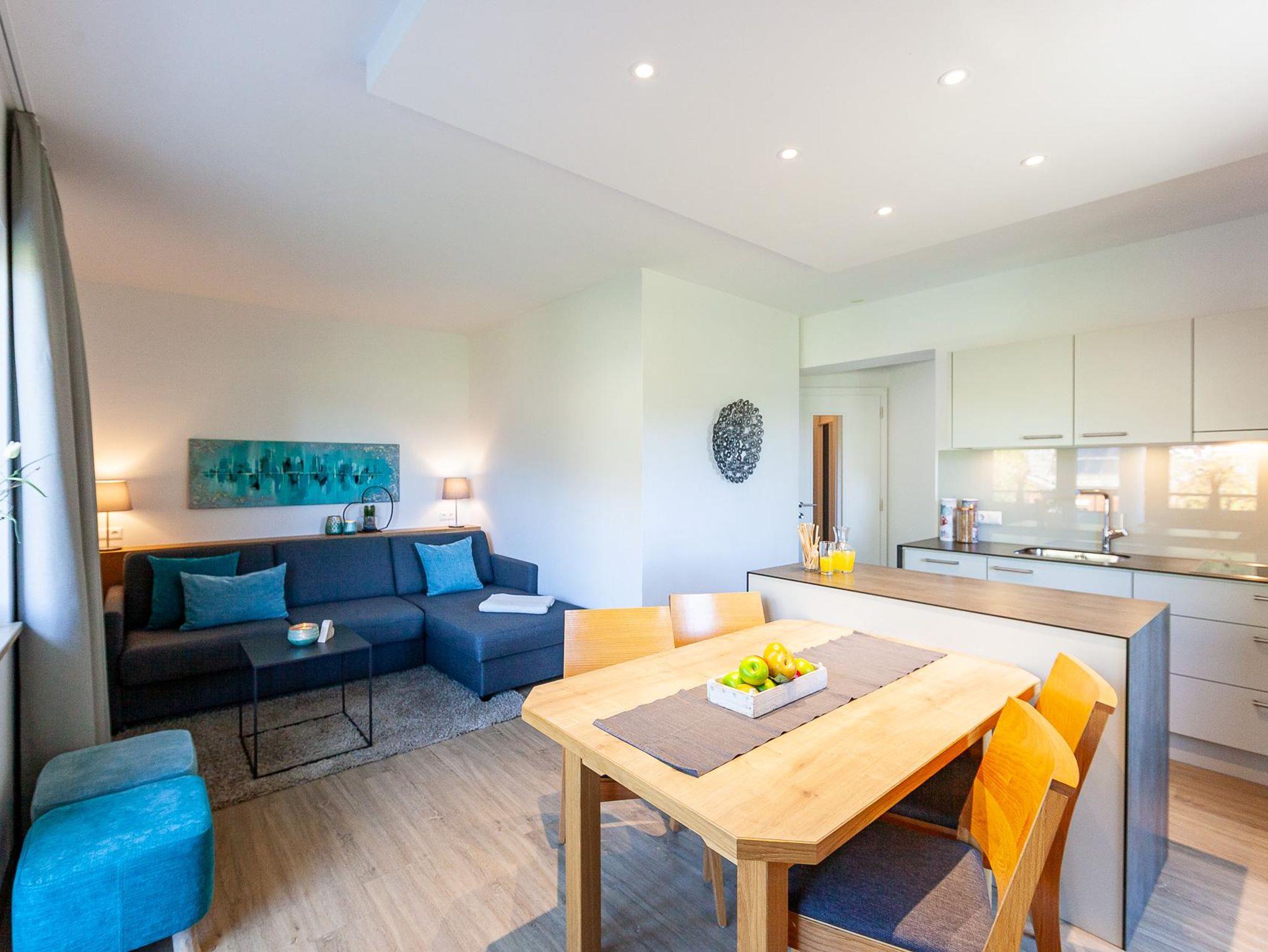 Diese großzügige und gemütliche Wohnung bietet direkten Zugang über eine kleine Terrasse mit vier Stufen hinauf auf die weitläufige Wiese zwischen Haus und Seeufer. Von hier aus sind auch die Wege zum Saunahaus, Spielehaus und den Spielplätzen kurz, was die Wohnung ideal für Familien oder auch Freunde macht.