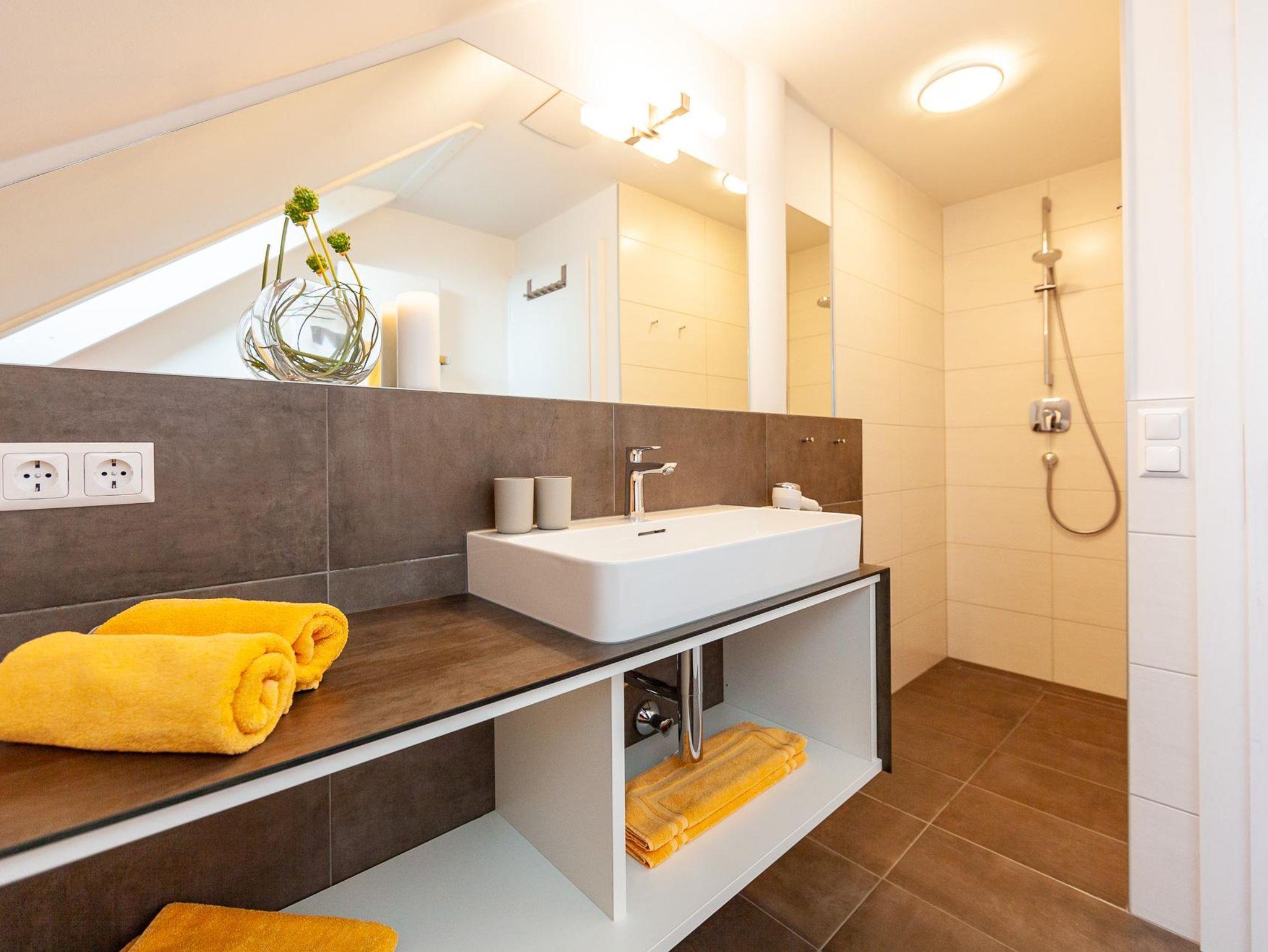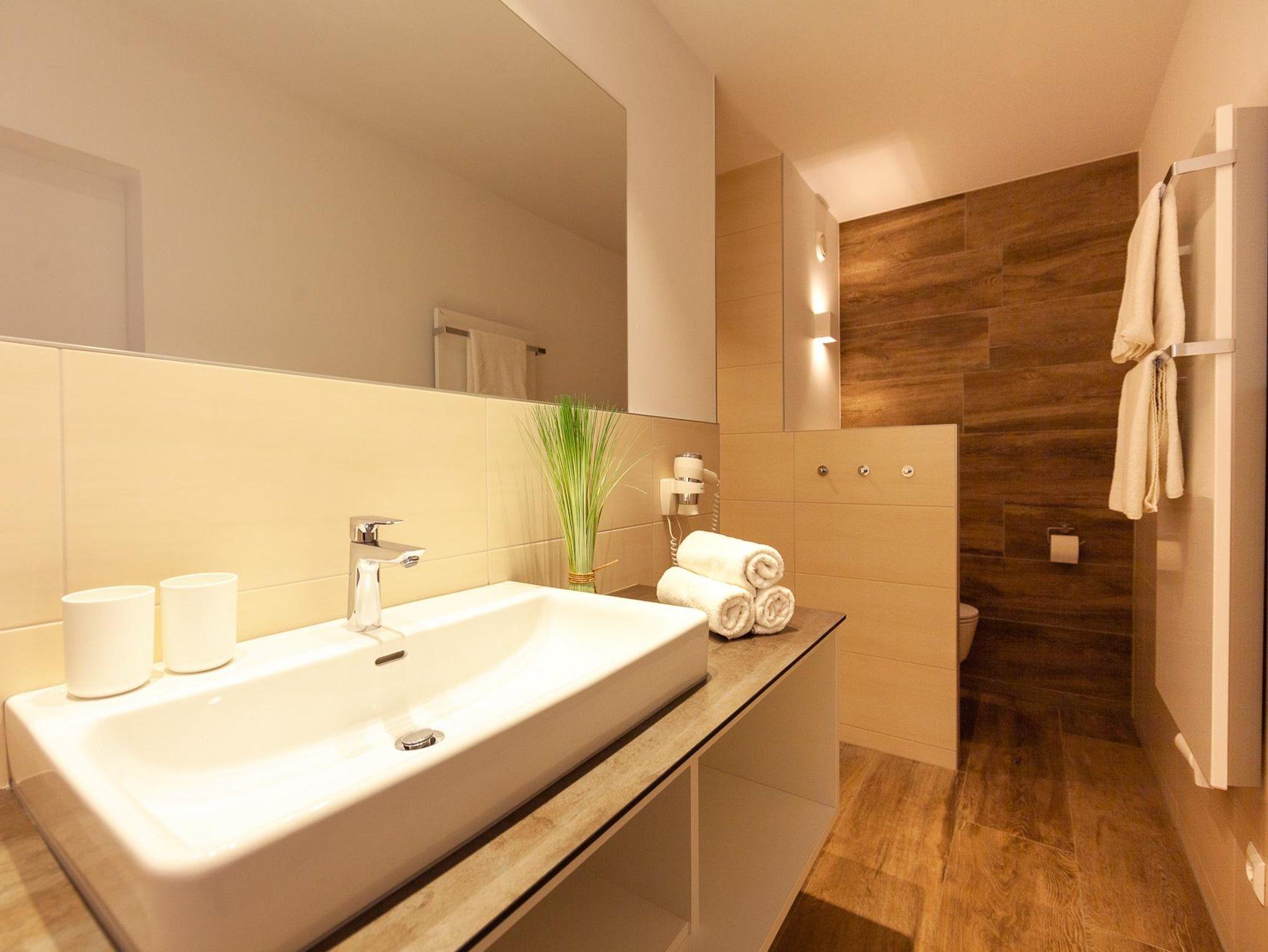 Mit zwei separaten Bädern – jeweils einem pro Schlafzimmer – sorgt die Wohnung für zusätzlichen Komfort und Privatsphäre. In beiden Schlafzimmern befindet sich ein gemütliches Doppelbett, wobei es einem der Zimmer noch ein Zustellbett gibt.