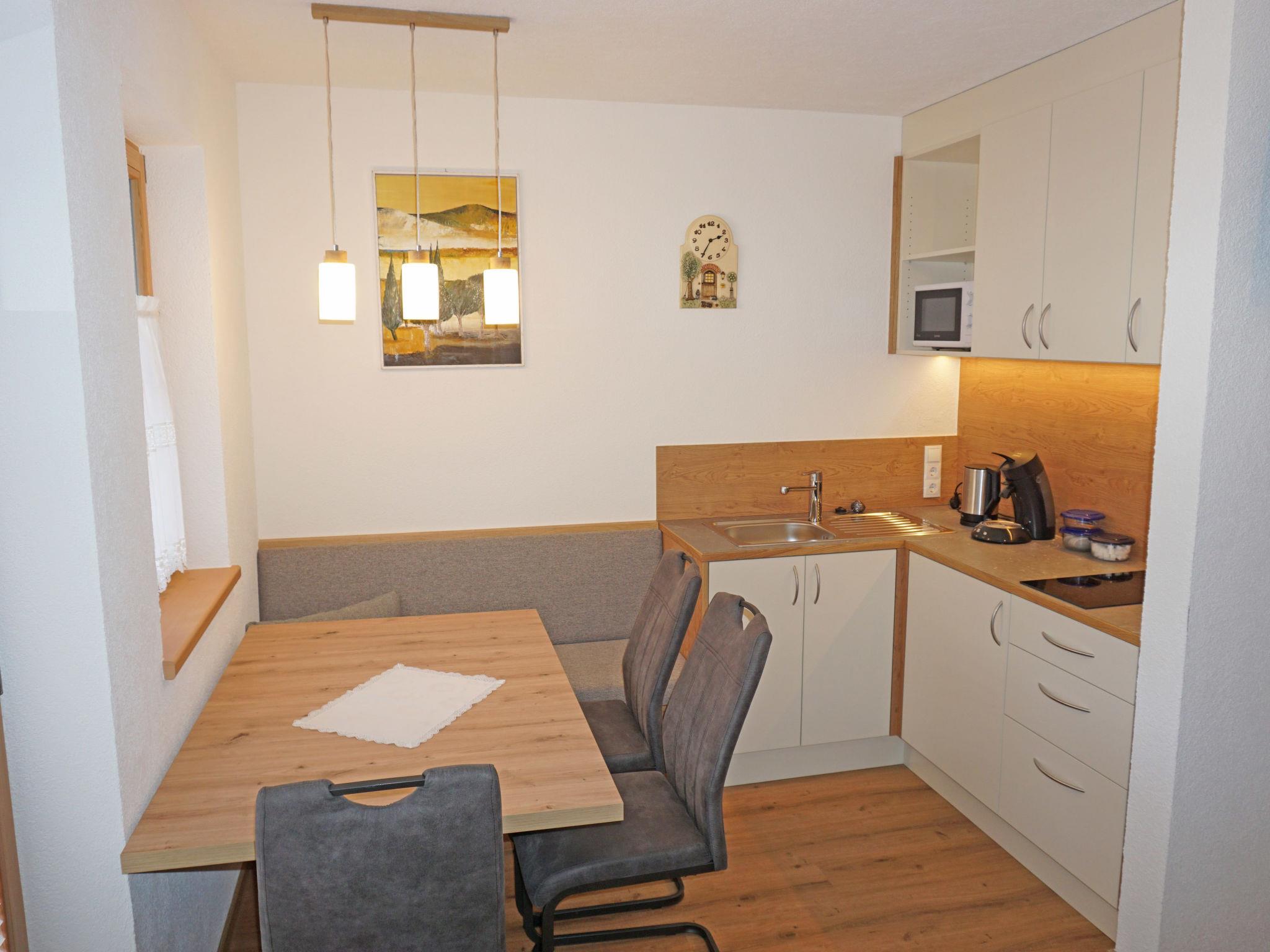 "Tschirgant", 3-room apartment 55 m2, lower ground floor. Beautiful and modern furnishings: 1 double bedroom. 1 double bedroom with satellite TV (flat screen). Kitchen-/living room (2 ceramic glass hob hotplates, toaster, kettle, microwave, electric coffee machine) with 1 sofabed (90 cm, length 170 cm), dining nook, satellite TV and flat screen. Exit to the terrace, north facing position. Shower/WC. Heating. Parquet floors. Large terrace. Terrace furniture. Very beautiful view of the mountains. Facilities: Internet (WiFi). Parking (2 cars). Please note: apartment courtyard side. Non-smokers only. No dishwasher available!
