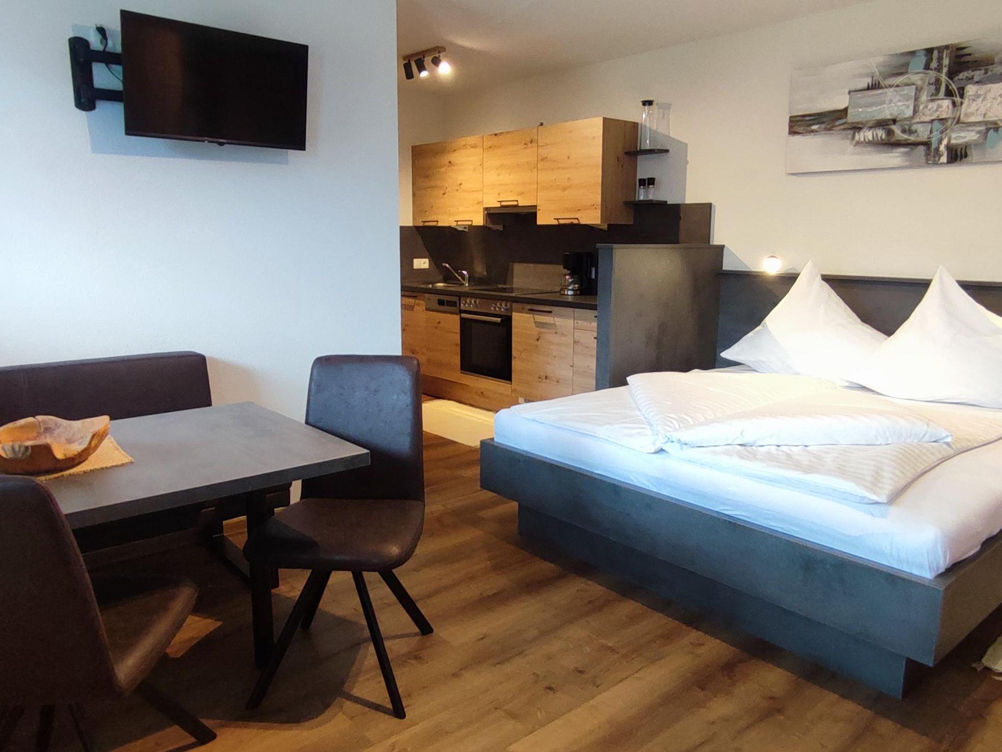 Größe ca. 30m² mit separatem Eingang · 2 Gäste ·Kombinierter Wohn- und Schlafbereich mit Doppelbett und TV · Kochnische mit Backofen, Herdplatte, Geschirrspüler, Kühlschrank mit Gefrierfach, Kaffeemaschine, Koch und Essgeschirr und Esstisch· 1 Badezimmer mit Dusche /WC·Sitzgelegenheit im Außenbereich ·die gesamte Wohnung ist mit Fußbodenheizung ausgestattet.