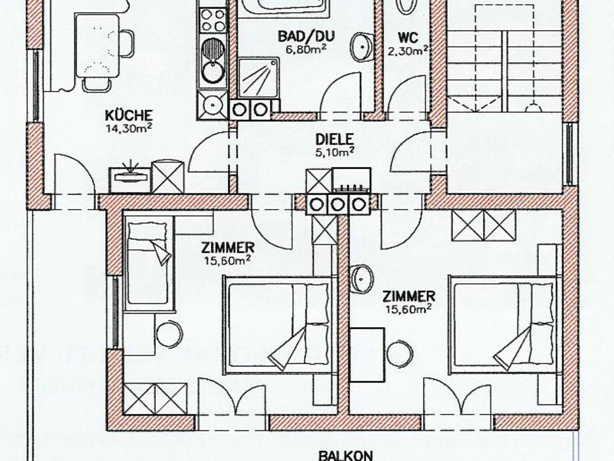 Appartement im Obergeschoss ausgestattet mit 2 Schlafzimmern (1 Doppelzimmer, 1 Dreibettzimmer), einer Küche, einem Bad und separatem WC. Balkon mit Bergblick. Für 6 Personen wird ein drittes Schlafzimmer ausgestattet mit einer Dusche und einem WC im Untergeschoss zur Verfügung gestellt.