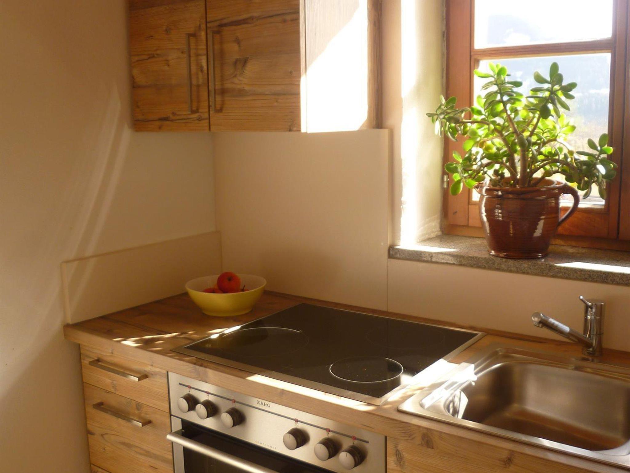 Vogeiwohnung ca. 40 qm: Sehr gemütlicher, heller Wohnraum, die Küche ist voll ausgestattet, DU/WC, Doppelzimmer, sonnenverwöhnter Balkon, 1. Stock, Sat-TV