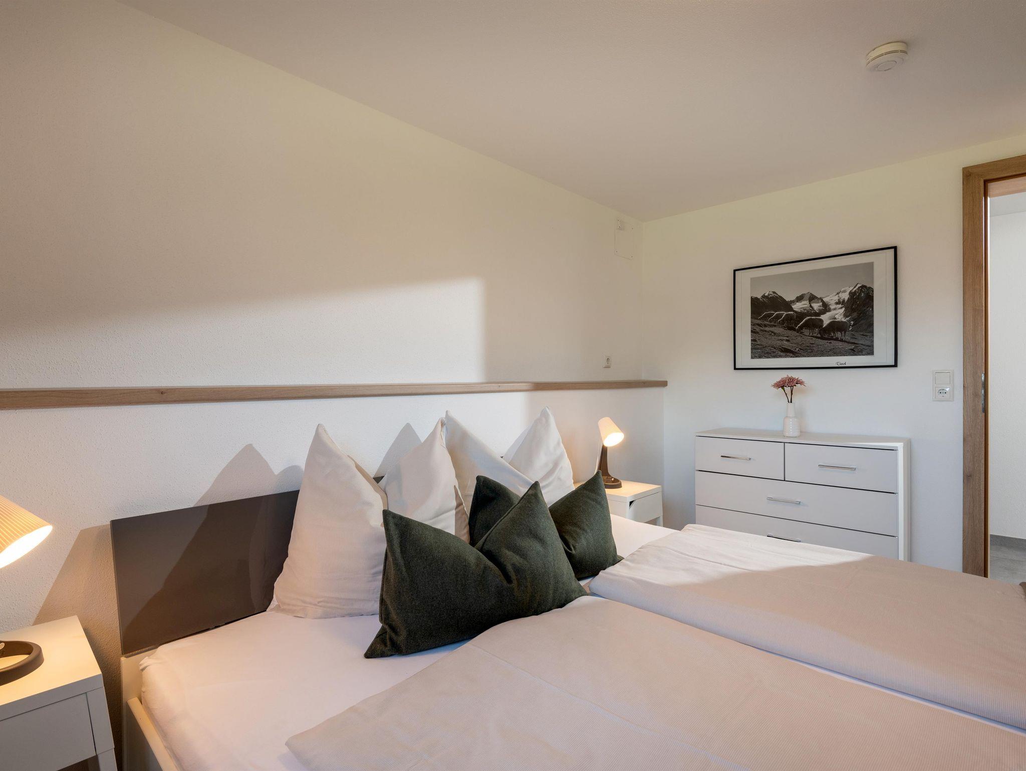 Das neu renovierte und modern ausgestattete Appartement im Erdgeschoss bietet auf 68 m² Platz für bis zu 4 Erwachsene und 2 Kinder. Es verfügt über zwei Schlafzimmer mit Doppelbetten sowie ein Wohnzimmer mit einer Doppelschlafcouch, die sich ideal für zwei Kinder eignet. Die voll ausgestattete Küche verfügt über einen gemütlichen Essbereich. Zudem stehen ein Badezimmer sowie ein kleiner Garten mit Terrasse zur Verfügung – perfekt für entspannte Stunden im Freien.