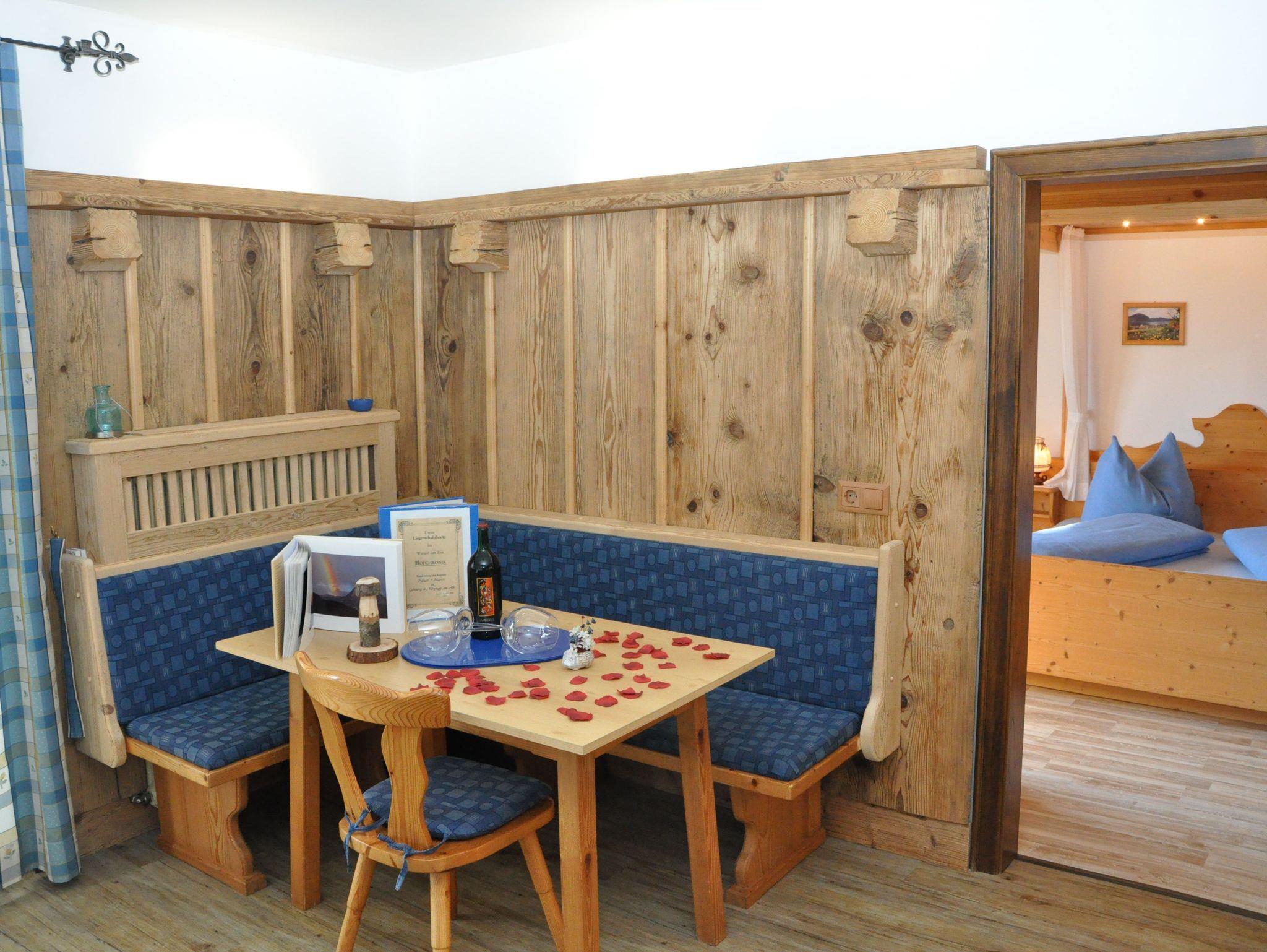 Die Möbel in den Appartements sind zum Großteil aus Massivholz und wurden von mit viel Liebe zum Detail hergestellt. Das urige Arbeiten aus Holz gibt es auch direkt zu kaufen. Wenn man Gefallen an der Einrichtung und Wohnaccessoires findet, einfach fragen nach dem selbst hergestellten Laternen, Bartischen, Weihnachtskrippen und mehr! Auch Wildspezialitäten aus dem hauseigenen Gehege stehen zum Verkauf.