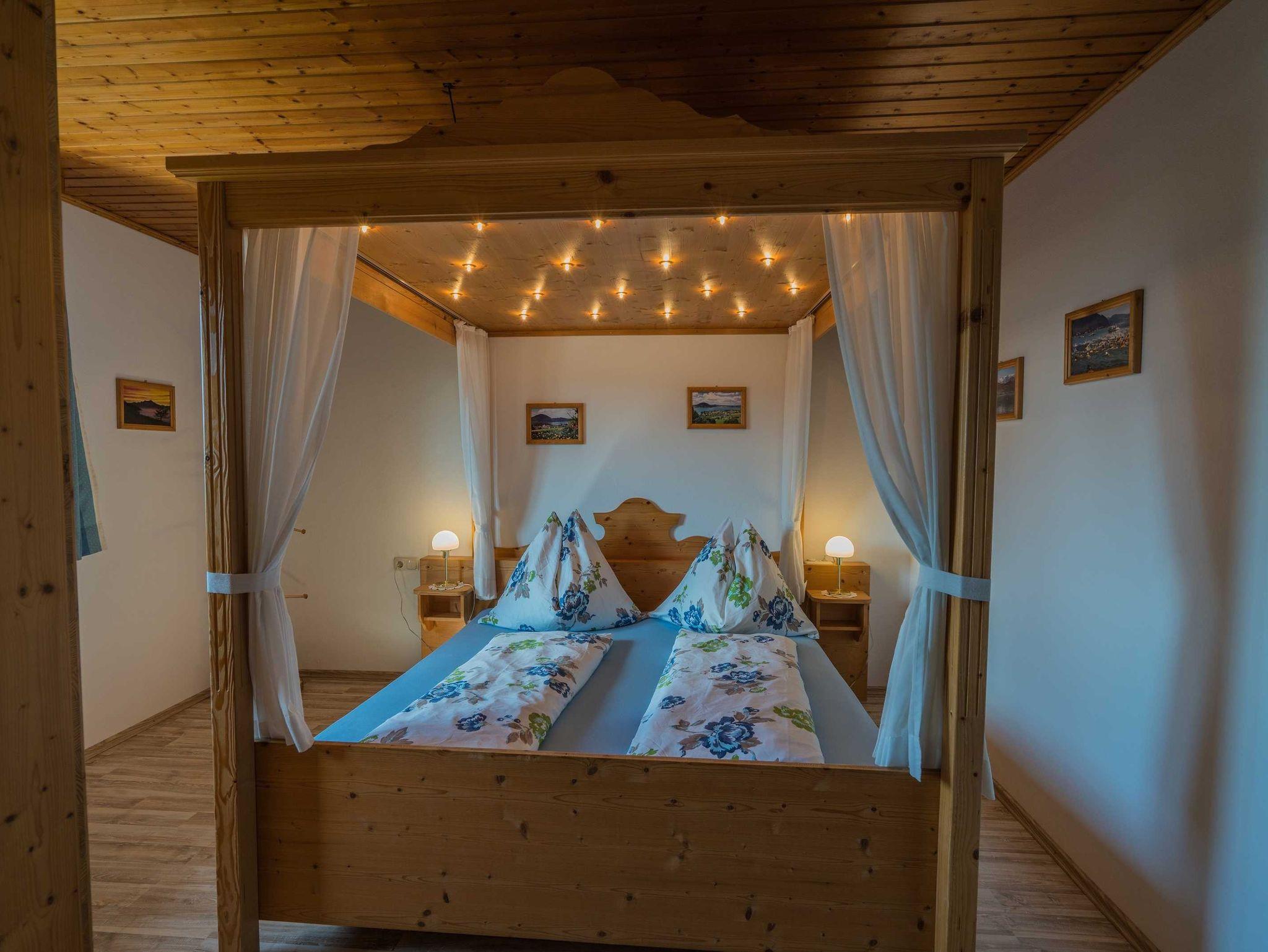 Das Herzstück der Wohnung, das Himmelbett mit Sternenhimmel, lädt zu romantischen und erholsamen Stunden ein. Einfach die blickdichten Vorhänge des Himmelbetts schließen und es sich gemütlich machen.