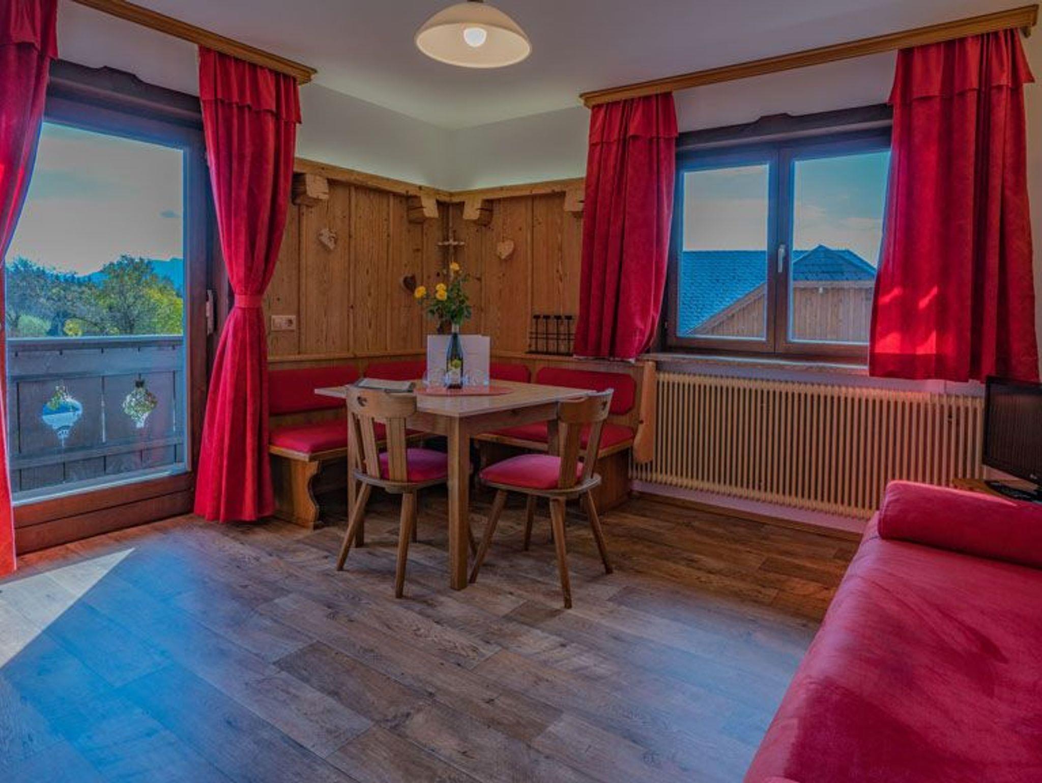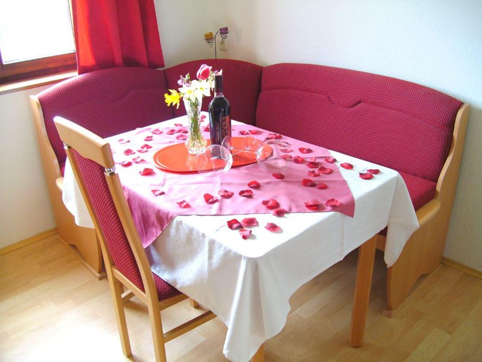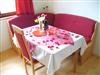 Ebenso befindet sich in der Ferienwohnung eine Sitzeckbank, um gemütlich miteinander zu speisen. Beim Frühstück die Morgensonne genießen und das Farbenspiel der traumhaften Gegend mit Blick auf das Gebirge erleben!