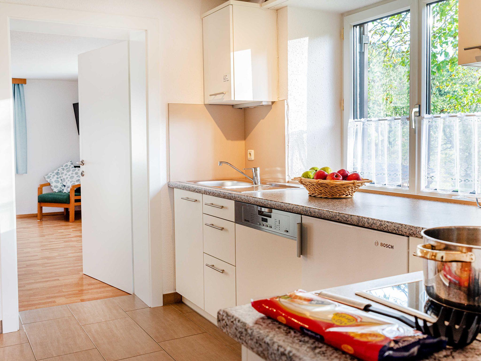 Schöne, große, geräumige Ferienwohnung, bestehend aus zwei getrennten Schlafzimmern, (ein Zimmer mit Doppelbett und das andere Zimmer mit Stockbett), Du/WC, Vorraum, Balkon und einer komplett ausgestatteten Wohnküche