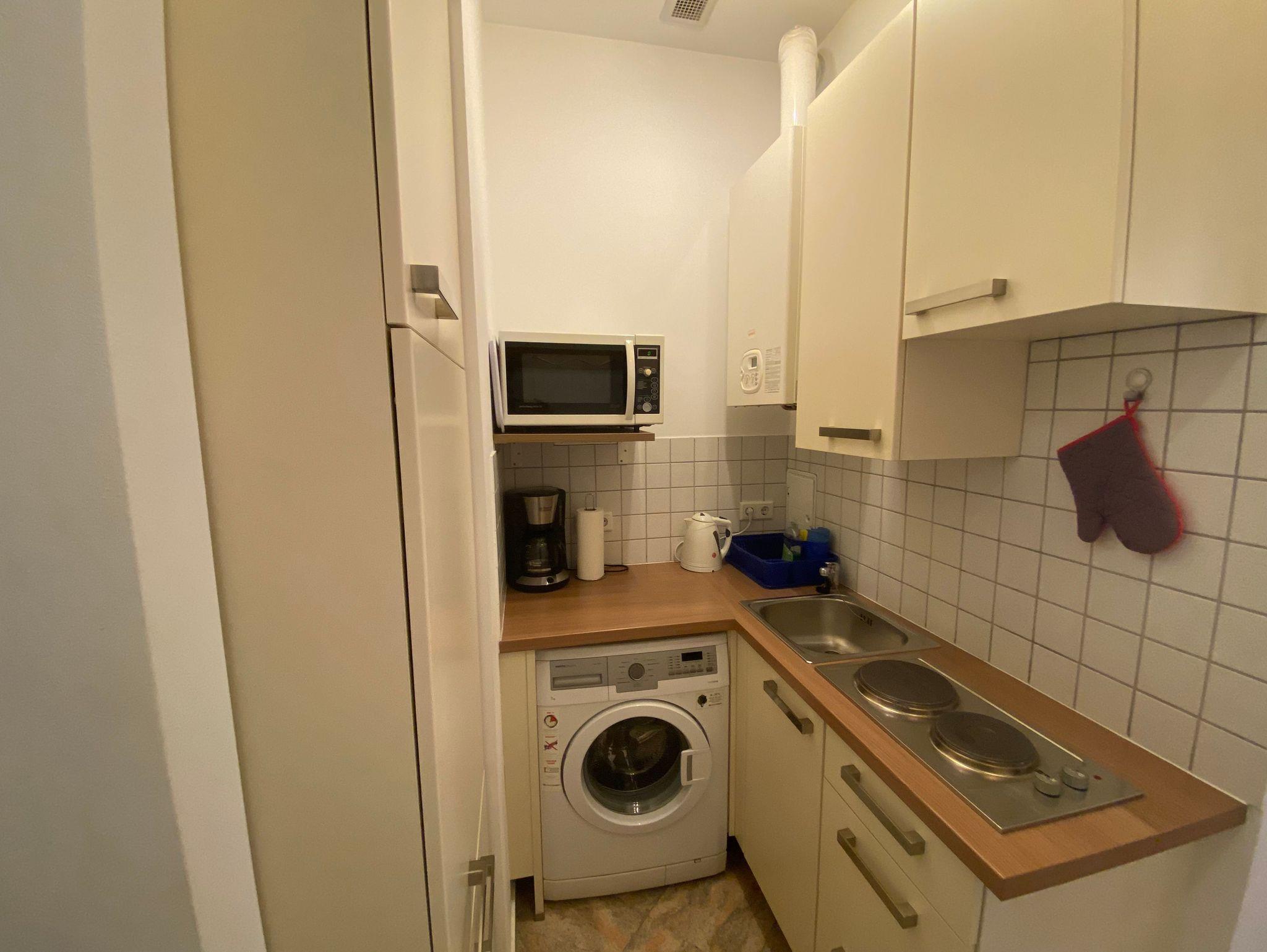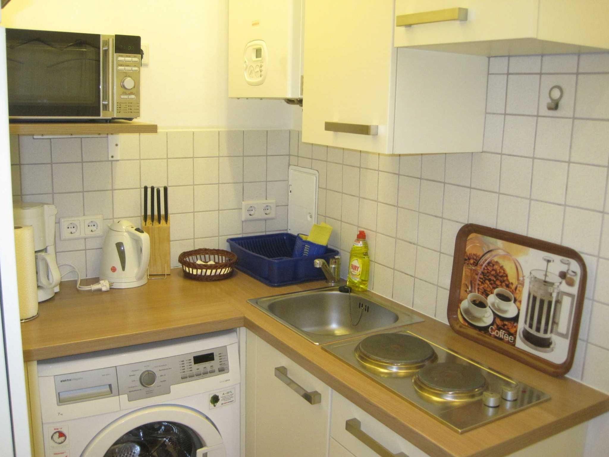 Kühlschrank mit Gefrierteil, Waschmaschine, Kaffeemaschine, Wasserkocher, Toaster sowie allen weiteren benötigten Utensilien etc.