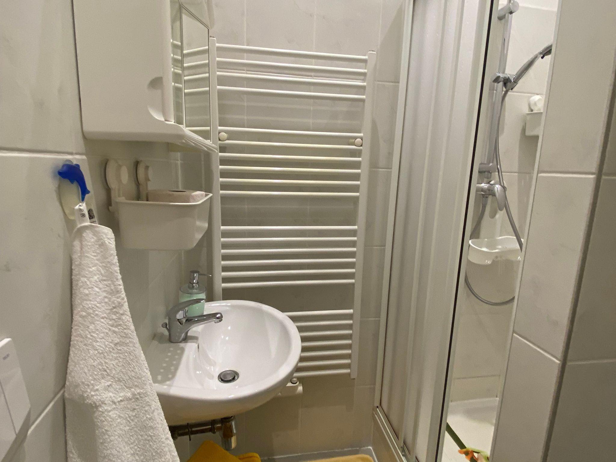 WC & Bad mit Dusche, Waschtisch, Spiegelschrank & Haarfön
