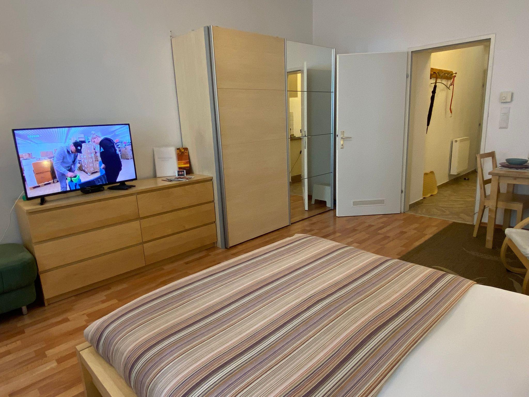 Wohn- Schlafraum mit Doppelbett, Sat- TV, Radiowecker mit CD Player, Wireless LAN- Internet, Möbeltresor