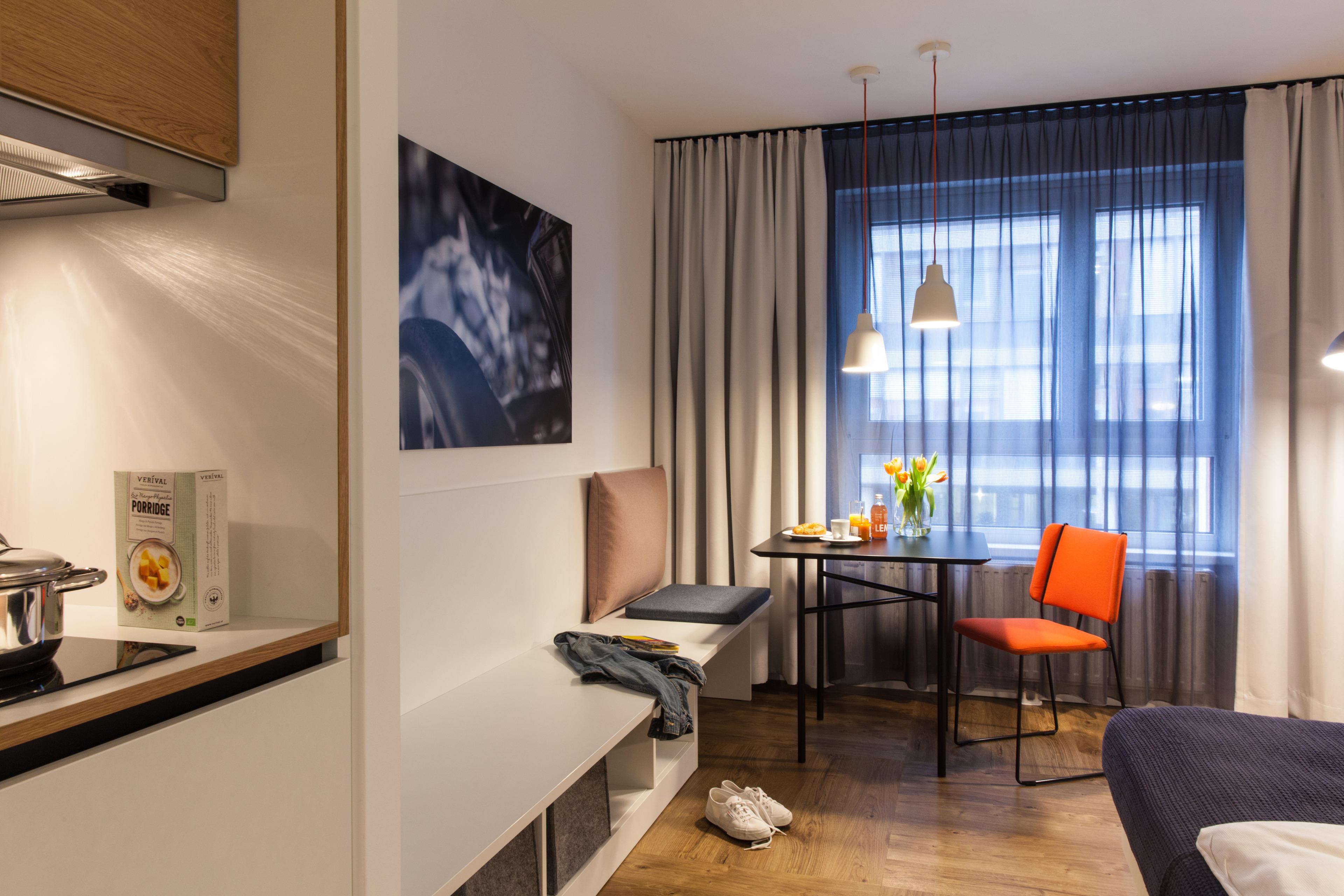 Die 162 Serviced Apartments in Wien sind mit hochwertigen Designermöbeln, Kitchenette und einem komfortablen Bett ausgestattet. Einige von ihnen verfügen über eine gemütliche Sitzecke, so dass Sie Gäste bequem empfangen können.