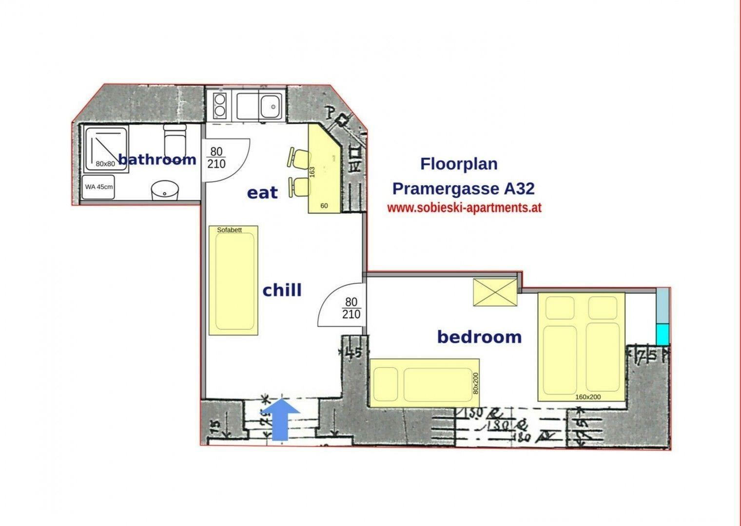 1 Schlafzimmer + 1 Wohnzimmer + 1 Badezimmer bieten angenehme Unterkunft für Paare und Familien. Eine zusätzliche Schlafmöglichkeit ist bei Bedarf im Wohnzimmer auf einer soliden Schlafcouch gegeben. Alle Zimmer sind lichtdurchflutet und mit Fenstern ausgestattet. Die hohe Raumhöhe bietet ein gutes Raumklima und viel Luft. Im Wohnzimmer befindet sich ein elegante Frühstückstheke.
