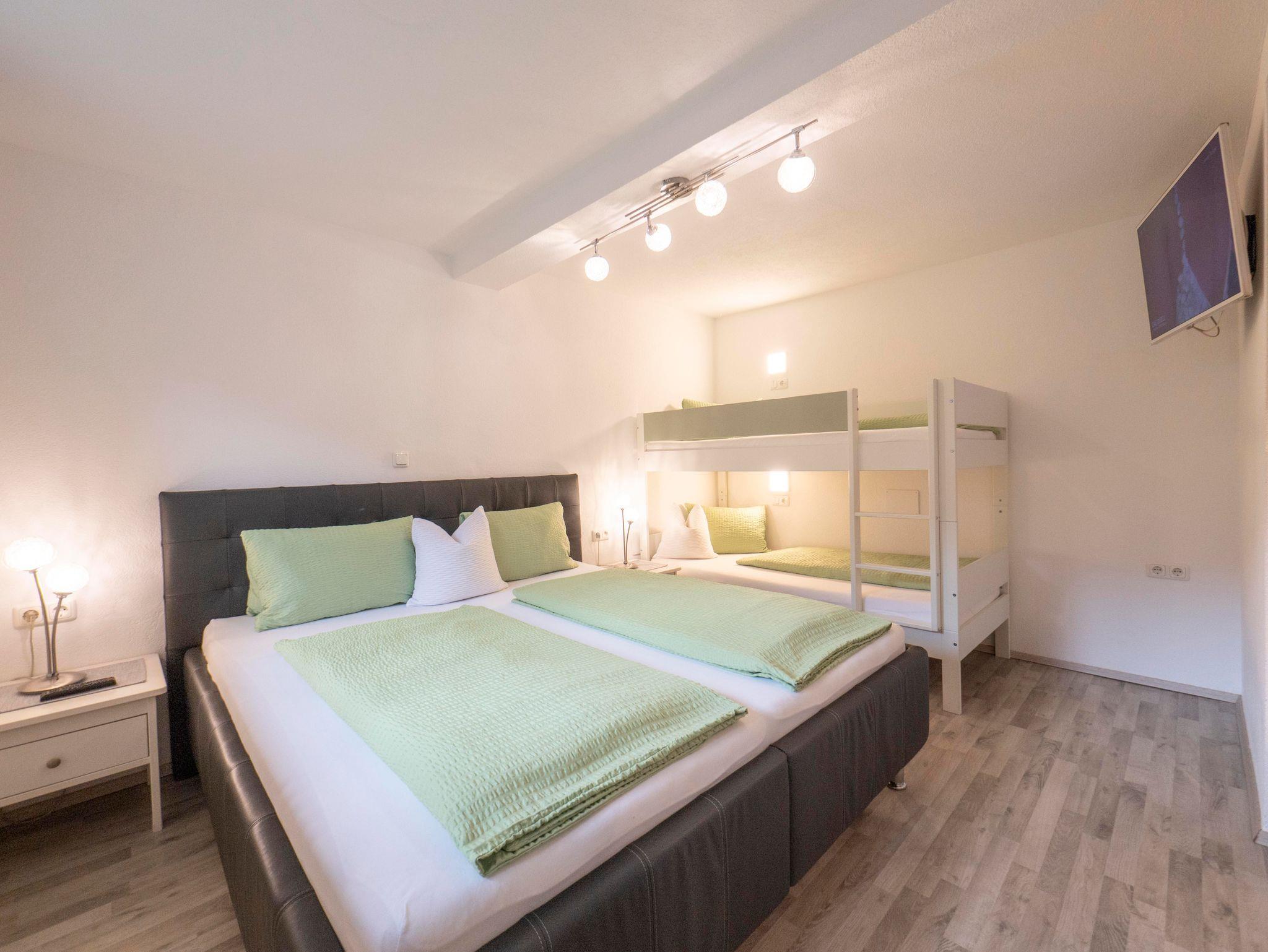 Unsere komfortabel ausgestattete Ferienwohnung mit Blick auf die umliegende Bergwelt verfügt über 2 Zimmer. 1 Zimmer mit Doppelbett und Etagenbett, TV sowie einen begehbaren Kleiderschrank. Wohn- /Esszimmer mit TV (Flachbildschirm) und PS4 mit 2 Controllern (Spiele, DVD`s). Die Küche ist voll ausgestattet (Geschirrspüler, 4 Glaskeramikherdplatten, Backofen, Kühlschrank mit extra Gefrierfach, Mikrowelle, Toaster, Wasserkocher, Filterkaffeemaschine, Pad-Kaffeemaschine).Dusche/WC, Fön. E-Heizung. Skischuhtrockner für 5 Paar Schuhe. Babybett und Kinderhochstuhl.