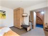 Über eine Außentreppe erreichen Sie den ersten Stock, wo sich direkt hinter der Wohnungseingangstür die Garderobe sowie der Essbereich mit einer einladenden Sitzecke befinden. Die voll ausgestattete Küche bietet alles, was Sie für einen angenehmen Aufenthalt benötigen.
